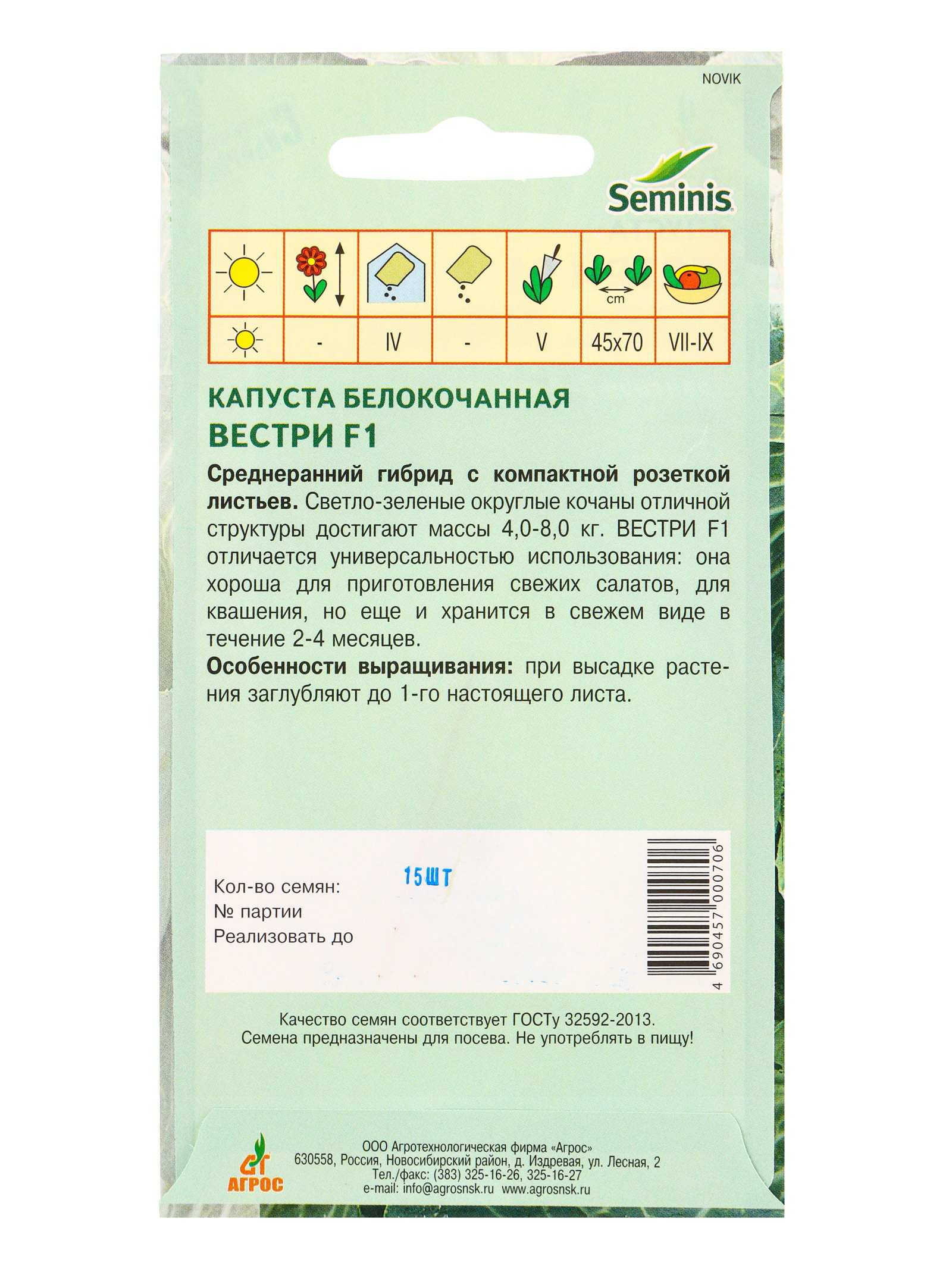 Семена Капуста "Вестри" F1 15 шт, Агросс, Россия
