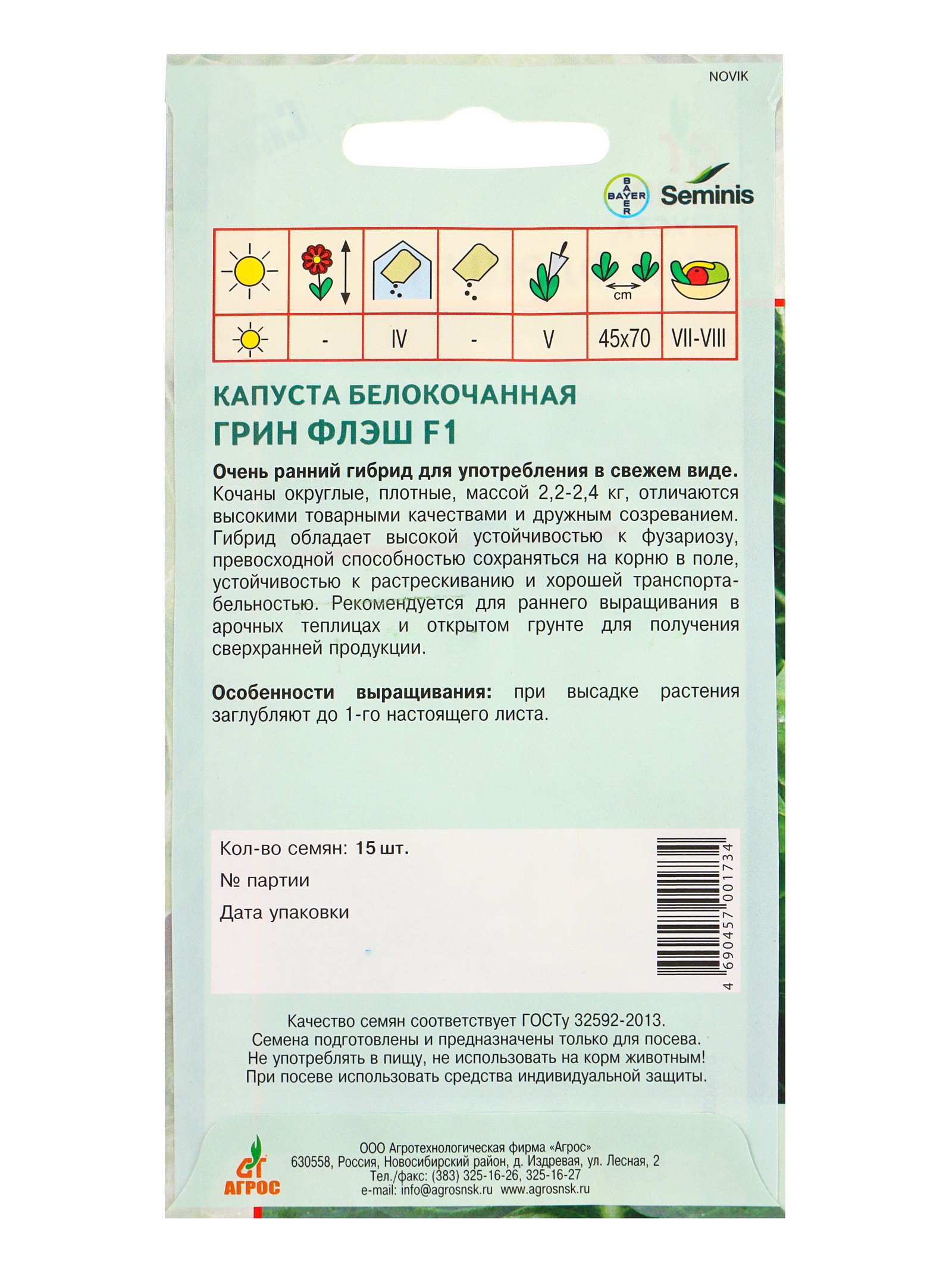 Семена Капуста "Грин флэш" F1 15 шт, Агросс, Россия