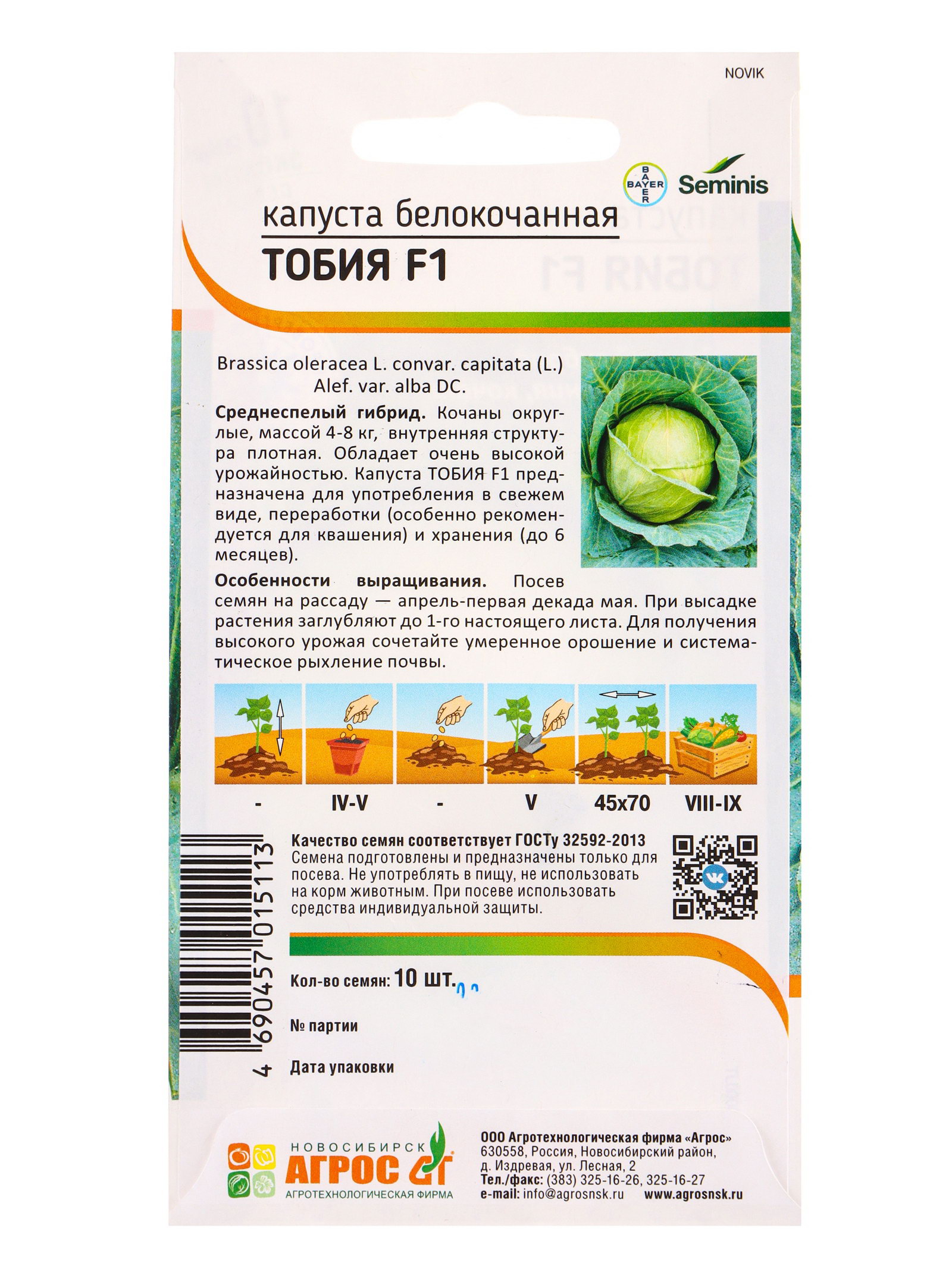 Семена Капуста "Тобия" 10 шт., Агросс, Россия