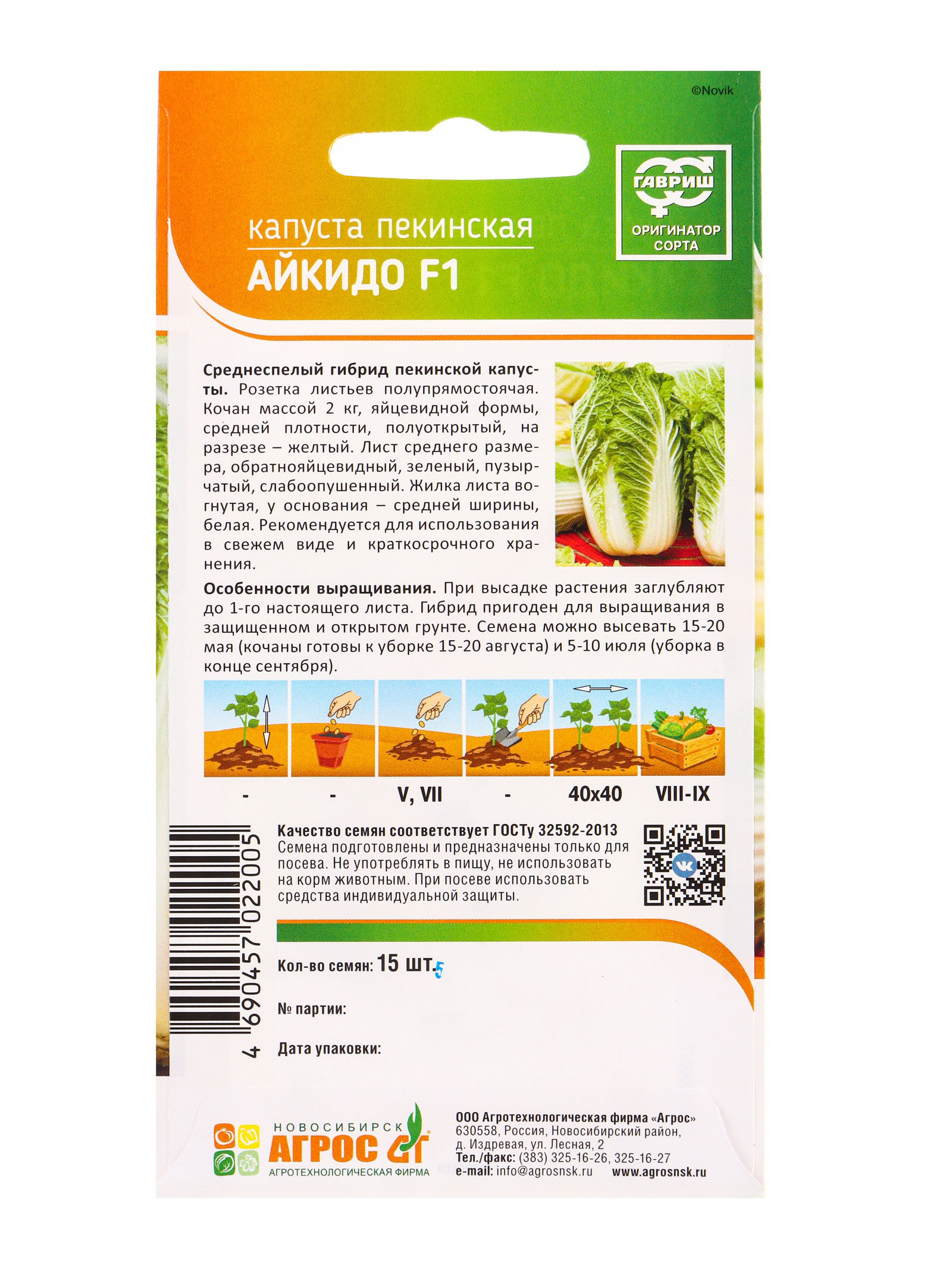 Семена Капуста пекинская Айкидо"F1 15 шт, Агросс, Россия