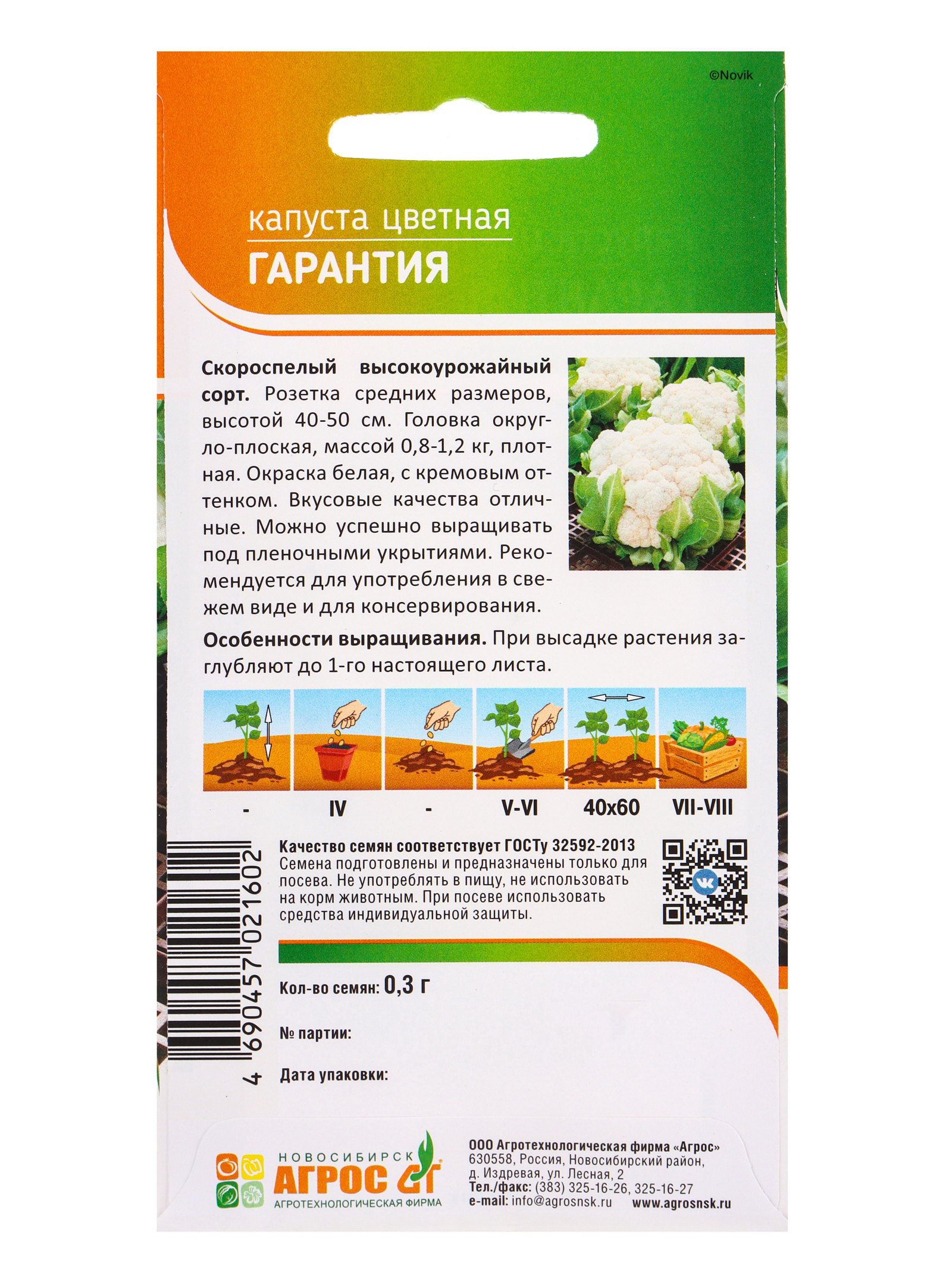 Семена Капуста цветная "Гарантия" 0.3 г, Агросс, Россия