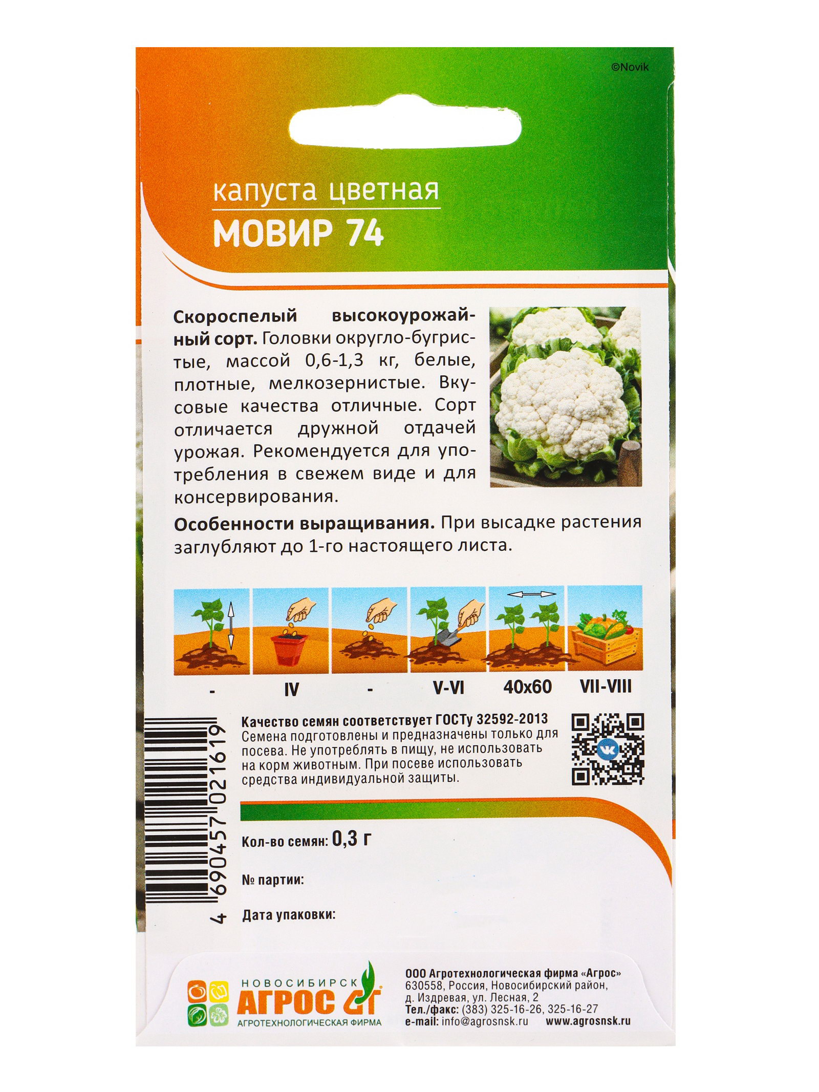Семена Капуста цветная "Мовир 74" 0.3 г, Агросс, Россия