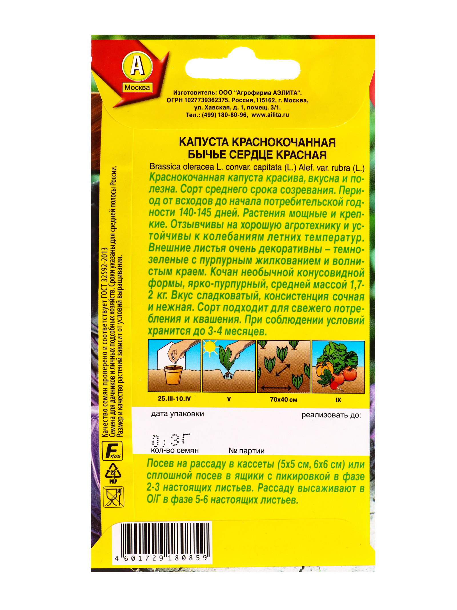 Семена Капуста к/к Бычье сердце красное, Ц/П,0.3 г, Агрофирма АЭЛИТА, Россия