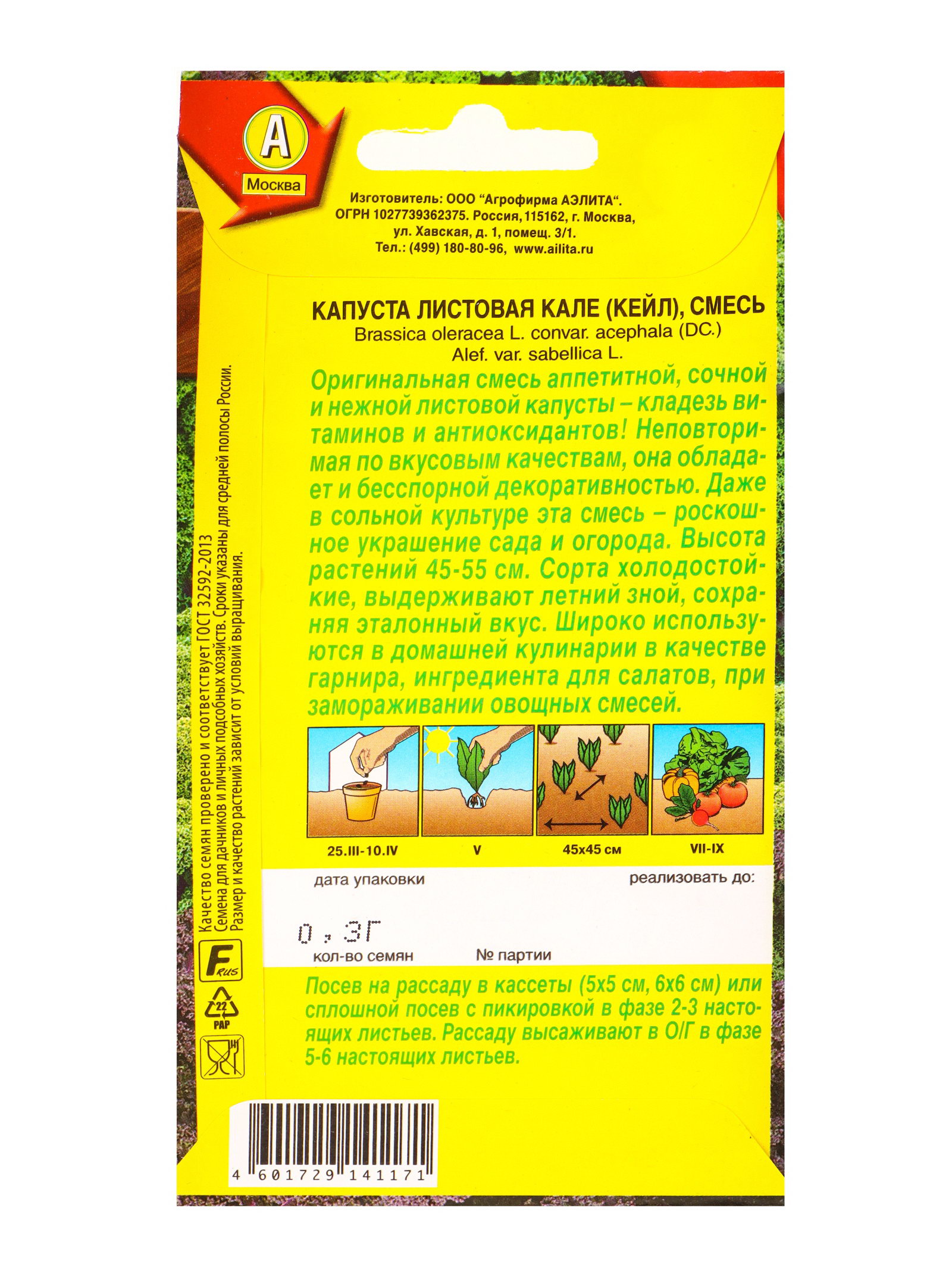 Семена Капуста листовая Кале, смесь, Ц/П,0.3 г, Агрофирма АЭЛИТА, Россия