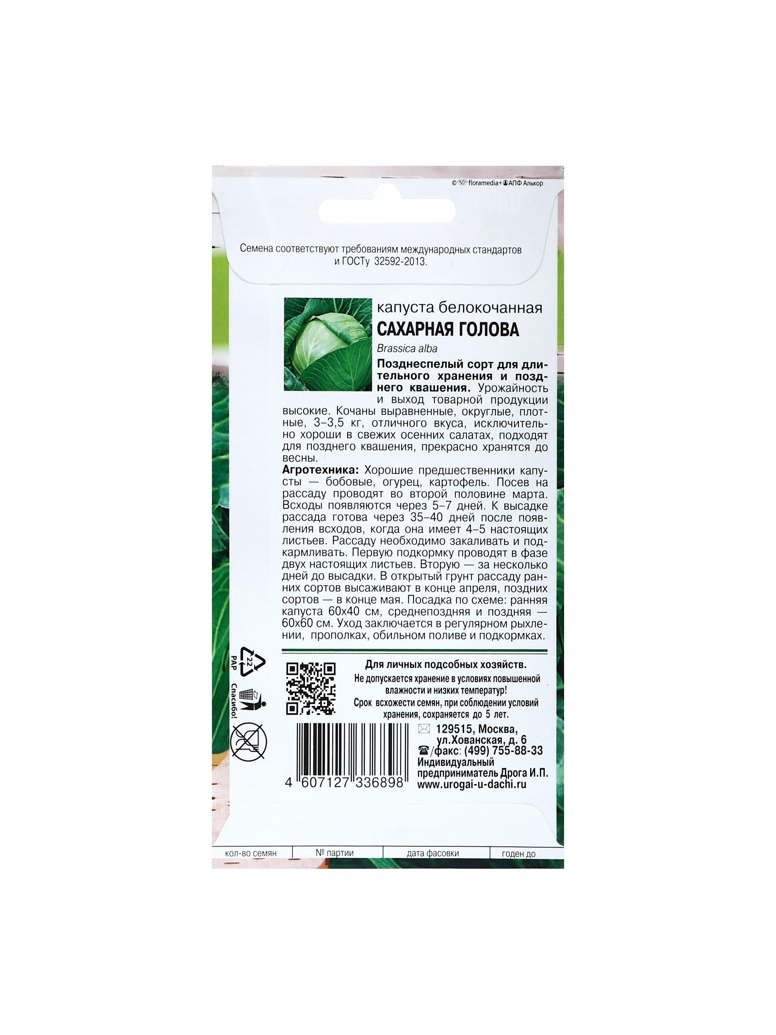 Набор семян Капуста б/к "Сахарная голова", 5 шт., 9x17x1 см., Мой выбор, Россия