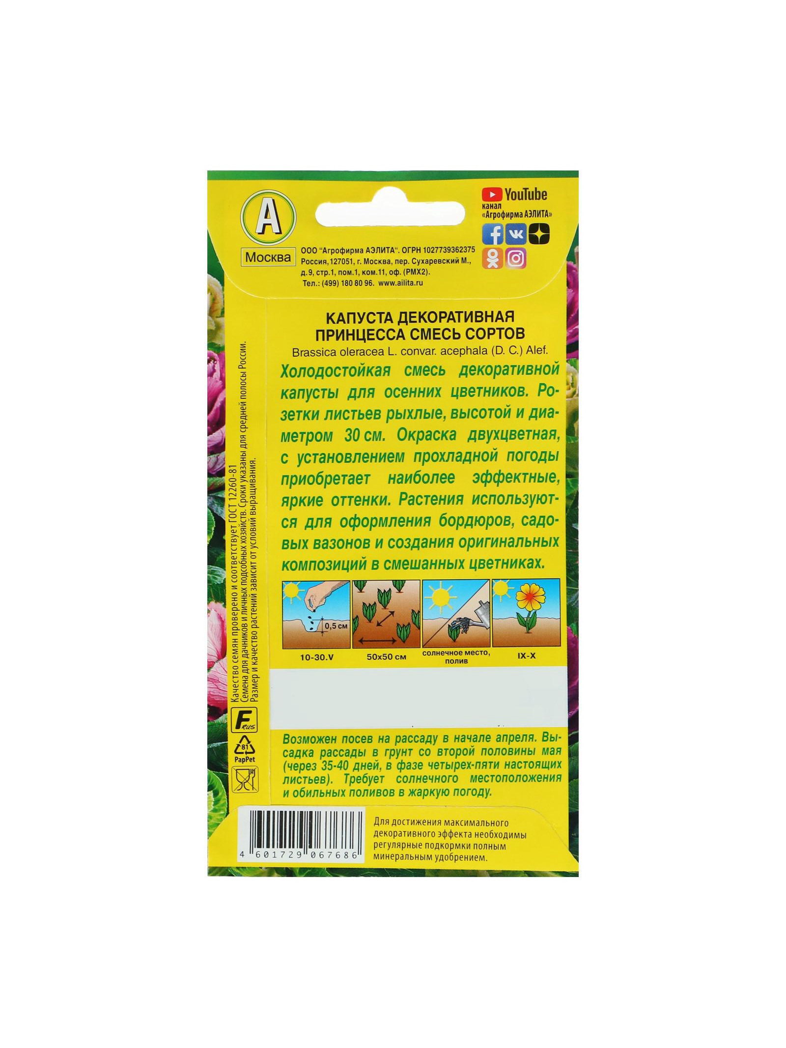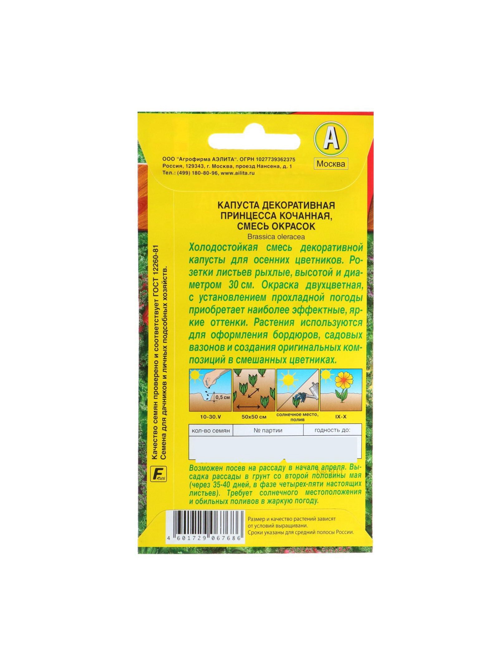 Набор семян Капуста декоративная "Принцесса", смесь окрасок, О, 5 шт., 9x17x1 см., Мой выбор, Россия