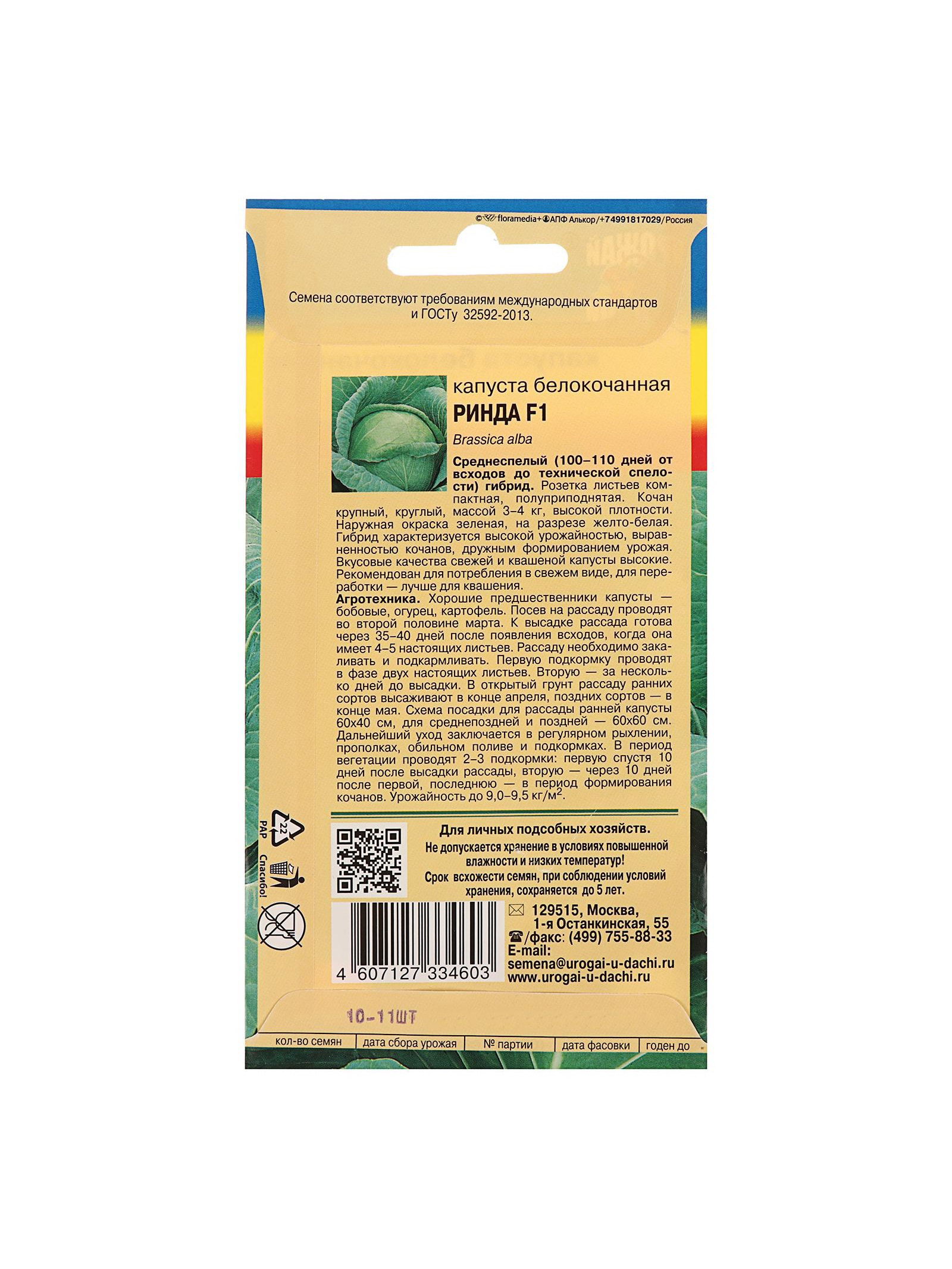 Набор семян Капуста белокочаная "Ринда", 5 шт., 9x17x1 см., Мой выбор, Россия