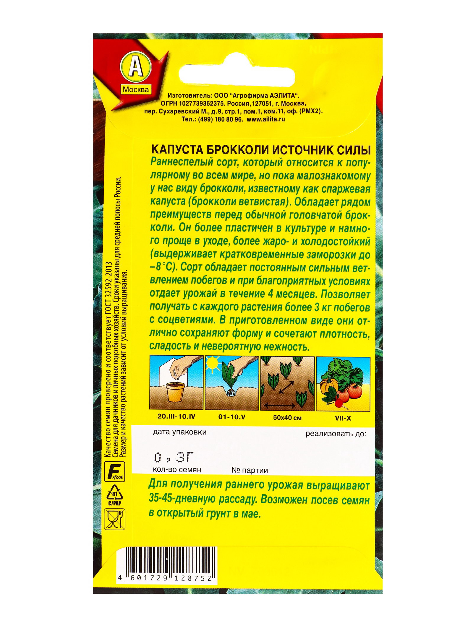 Семена Капуста брокколи "Источник силы", 0.3 г, Агрофирма АЭЛИТА, Россия