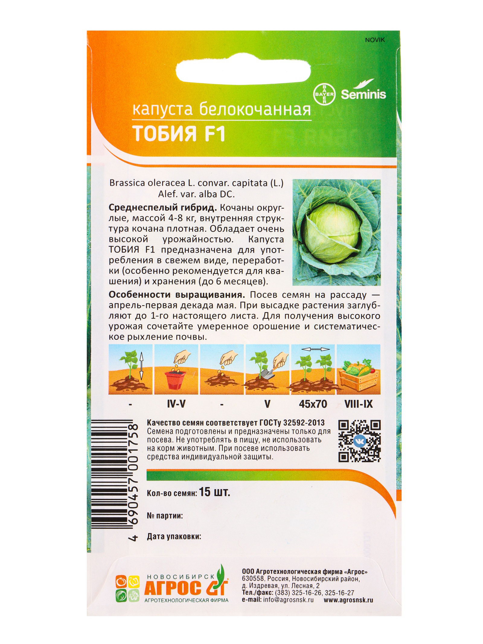 Семена Капуста "Тобия", F1, 15 шт., Агросс, Россия