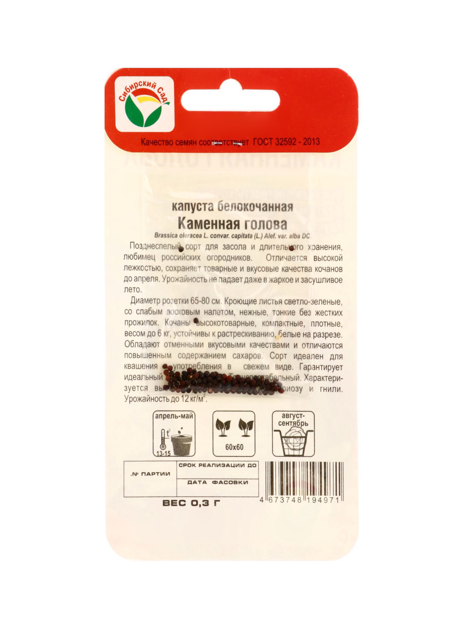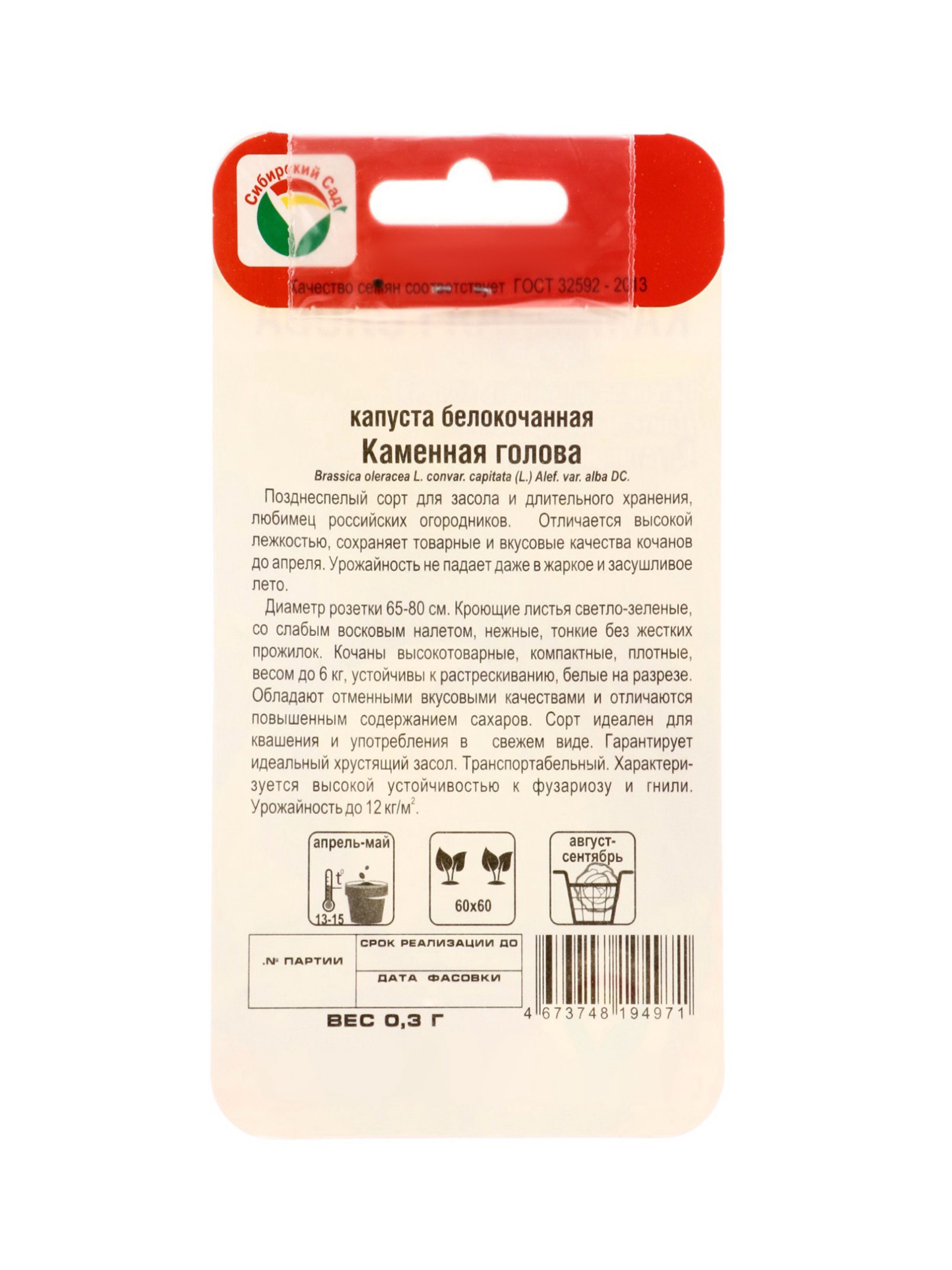 Семена Капуста белокочанная "Каменная голова", 0.3 г, Сибирский сад, Россия