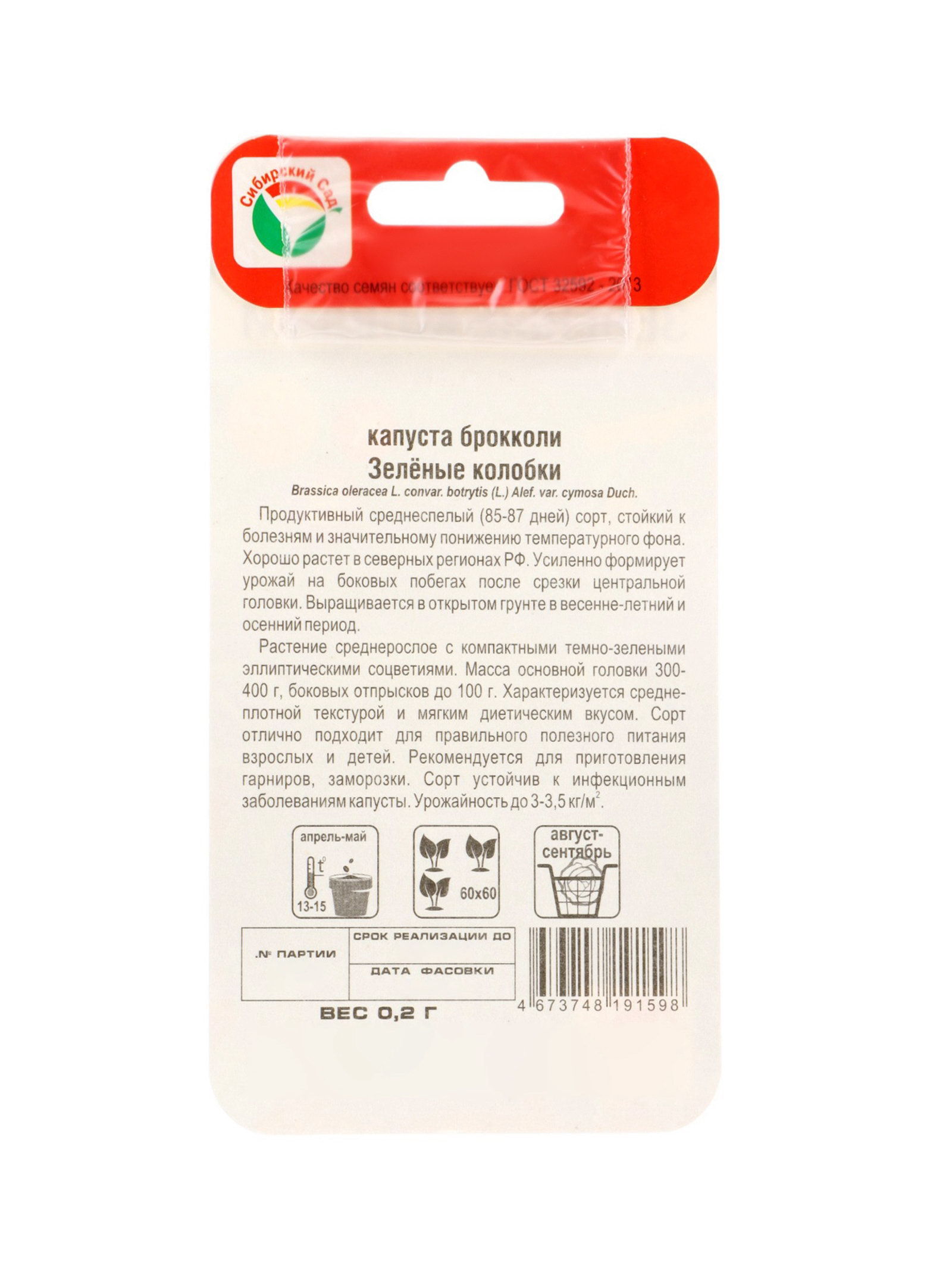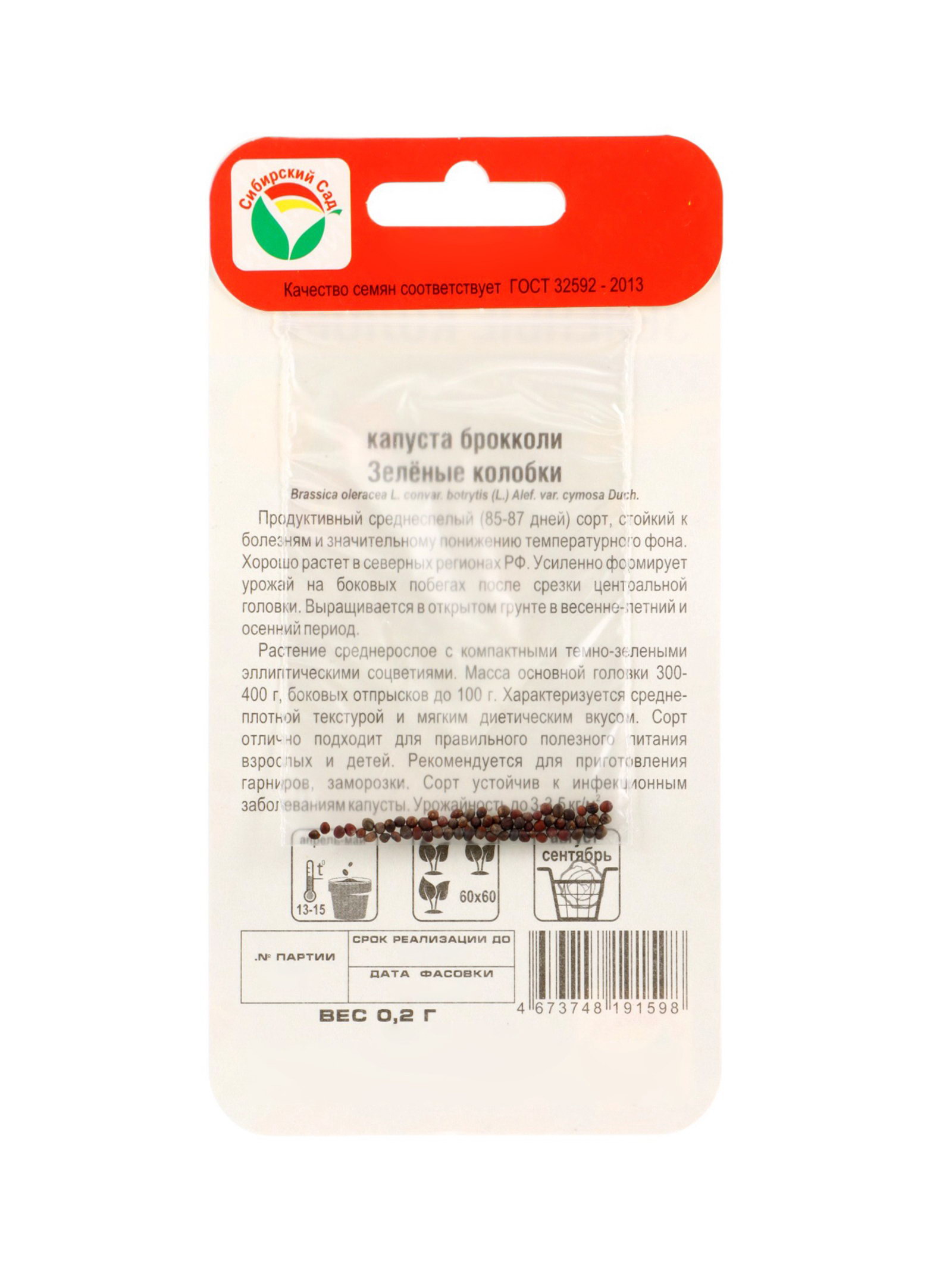 Семена Капуста брокколи "Зелёные колобки", 0.2 г, Сибирский сад, Россия