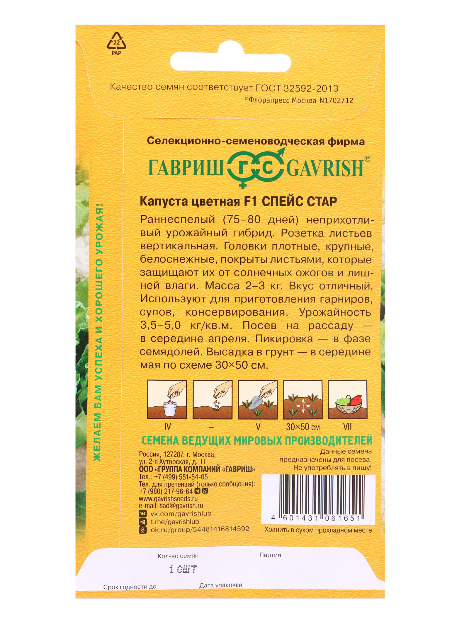 Семена Капуста цветная "Спейс Стар", F1, 10 шт.,, Гавриш, Россия