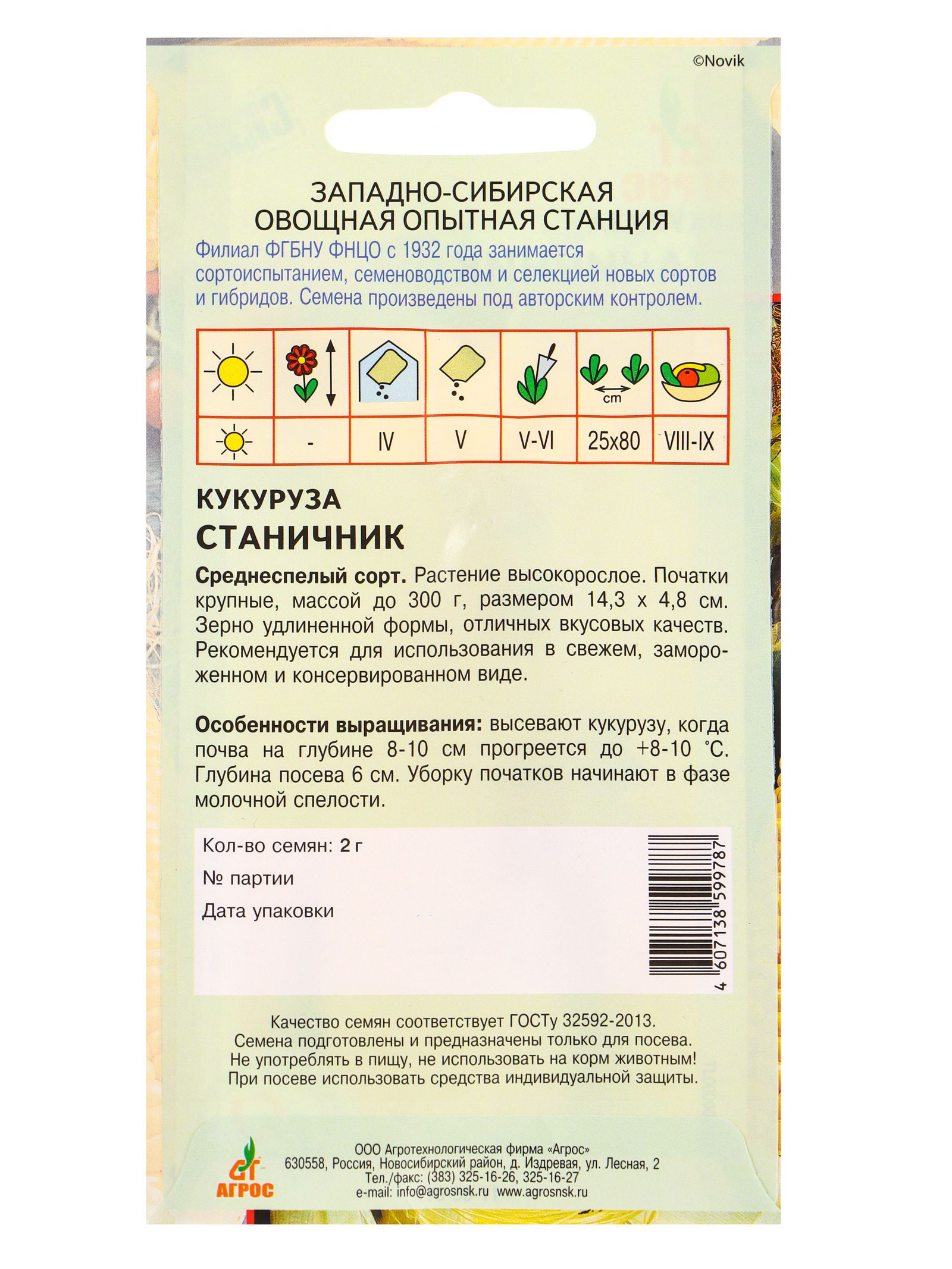 Семена Кукуруза "Станичник" 2 г, Агросс, Россия