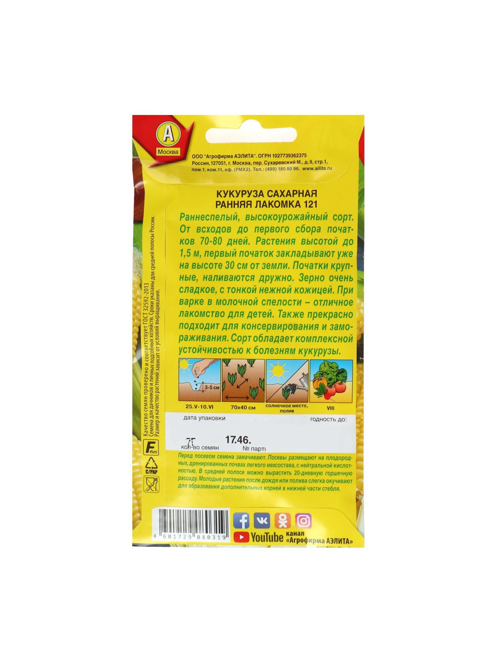 Набор семян Кукуруза сахарная "Ранняя лакомка 121", 5 шт., 9x17x1 см., Мой выбор, Россия