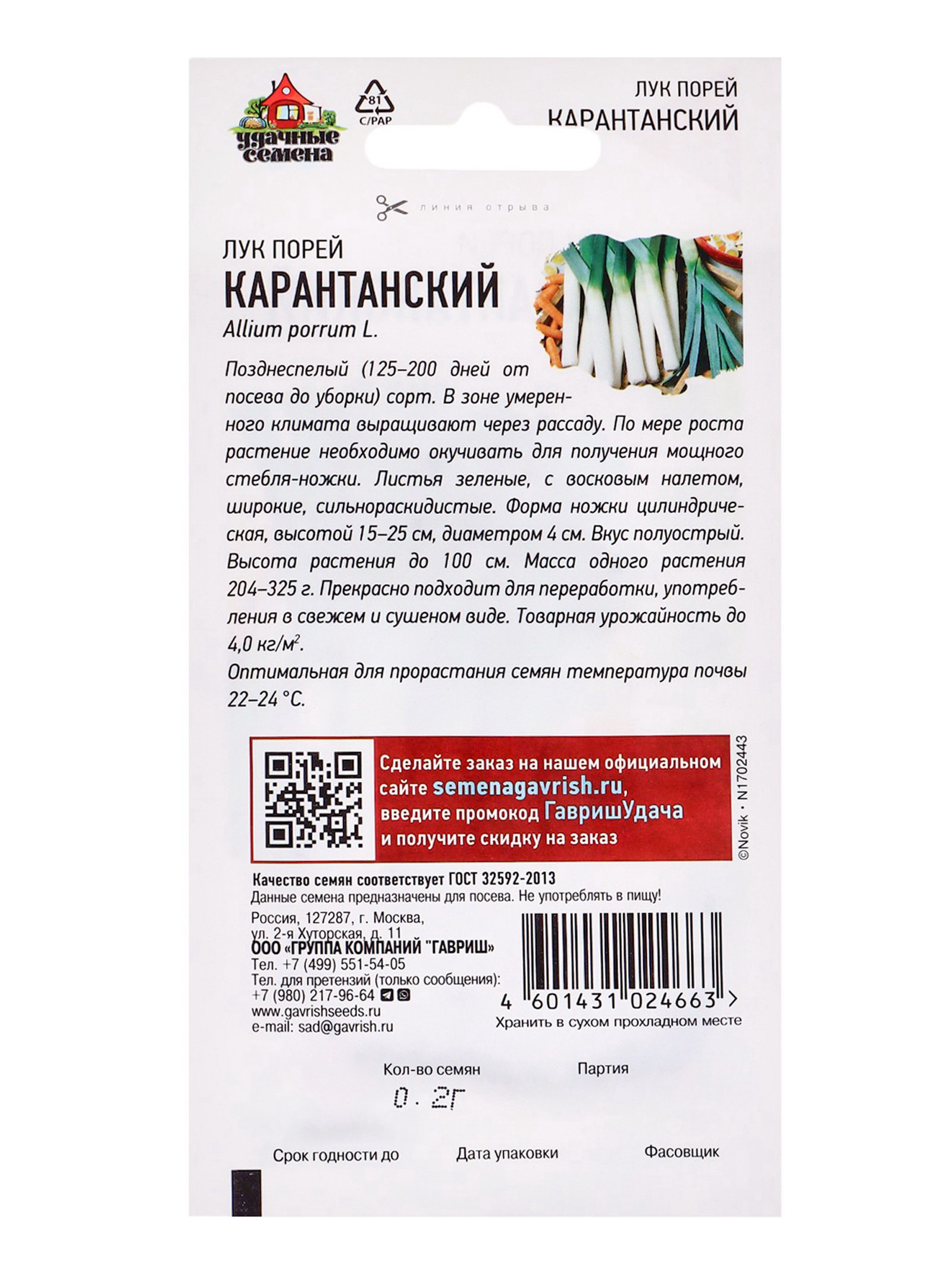 Семена Лук порей "Карантанский", ц/п, 0.2 г серия ХИТ х3, Гавриш, Россия