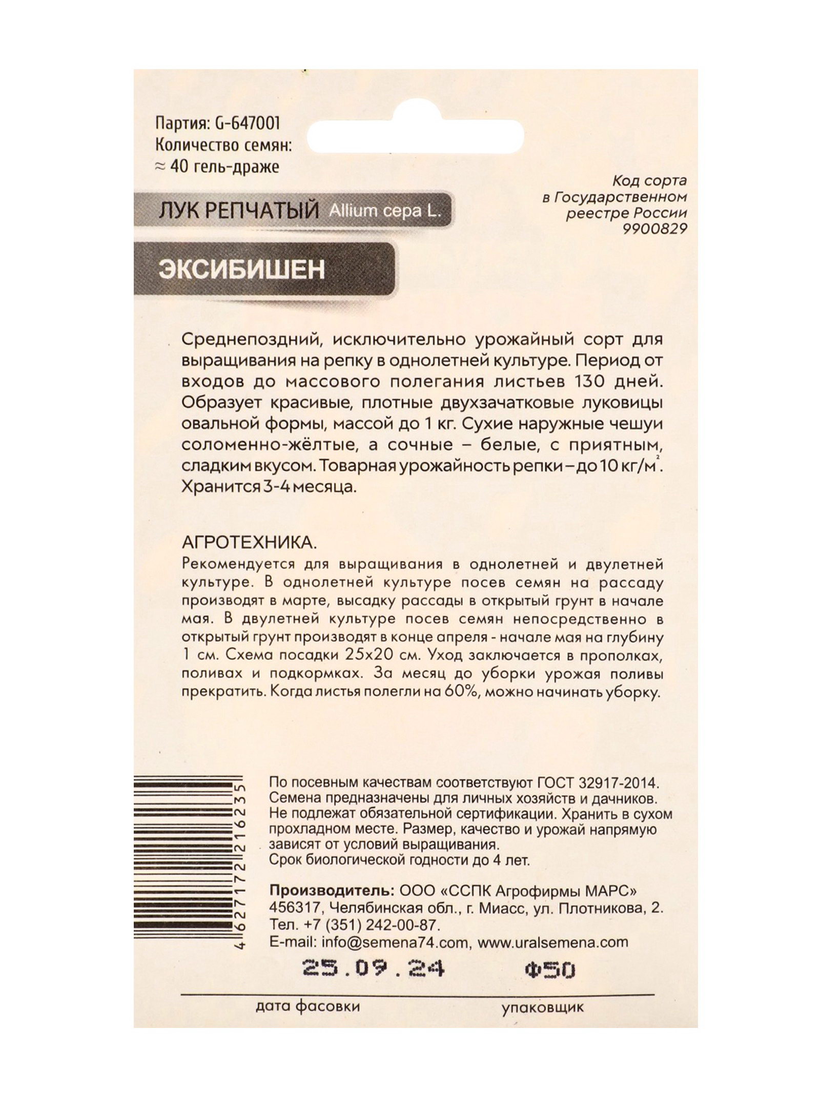 Семена Лук репчатый "Эксибишен", 40 шт., Уральский Дачник, Россия