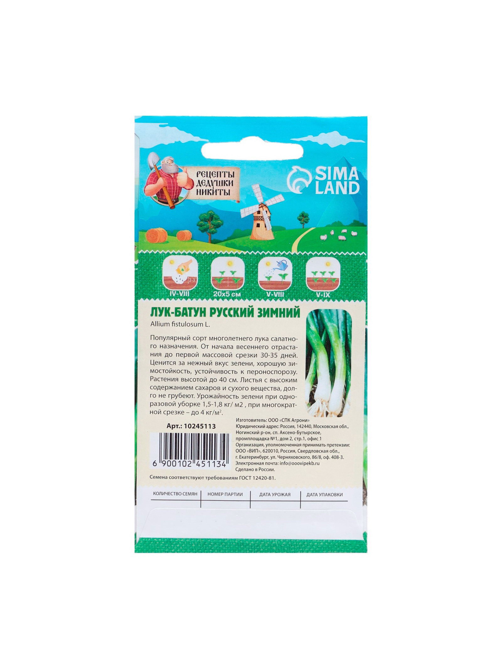 Семена Лук-батун "Русский зимний", 0.5 г, Рецепты дедушки Никиты, Россия
