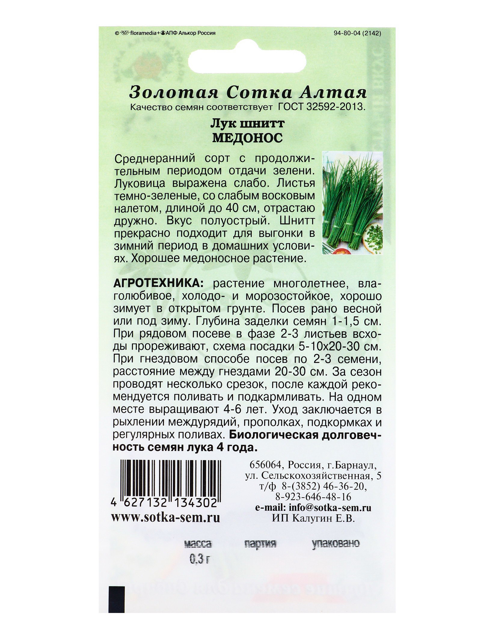 Семена Лук "Шнитт Медонос", 0.3 г, Золотая Сотка Алтая, Россия