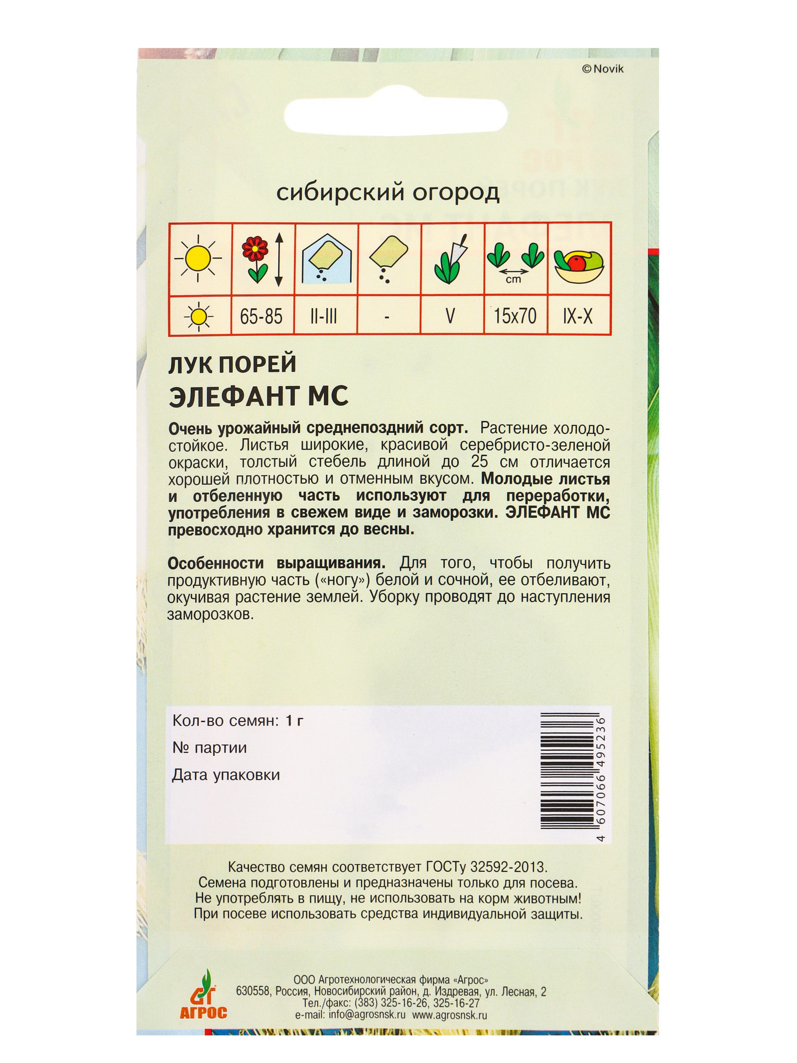 Семена Лук порей "Элефант МС" 1 г, Агросс, Россия