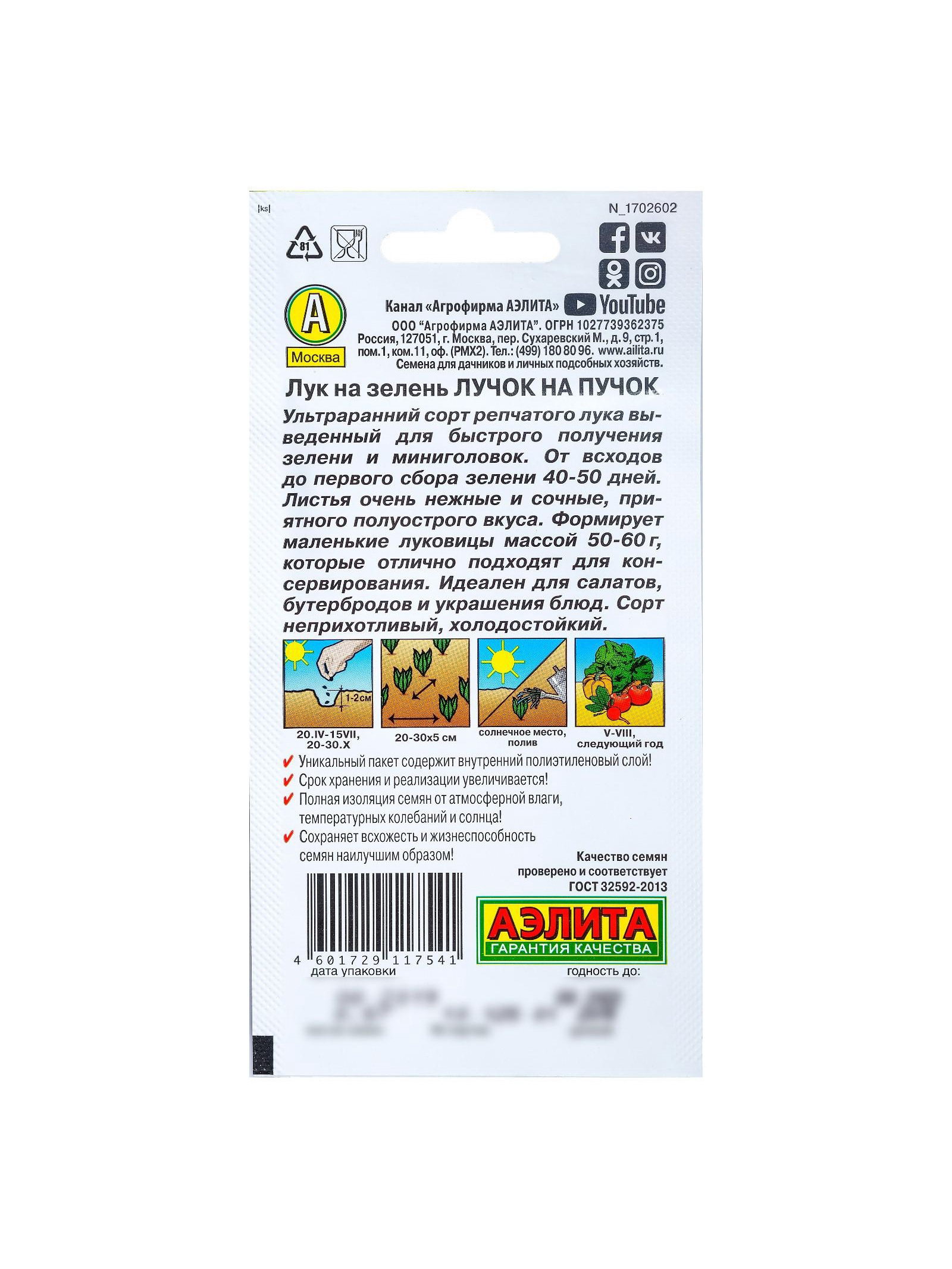 Набор семян Лук на зелень "Лучок на пучок", 5 шт., 9x17x1 см., Мой выбор, Россия