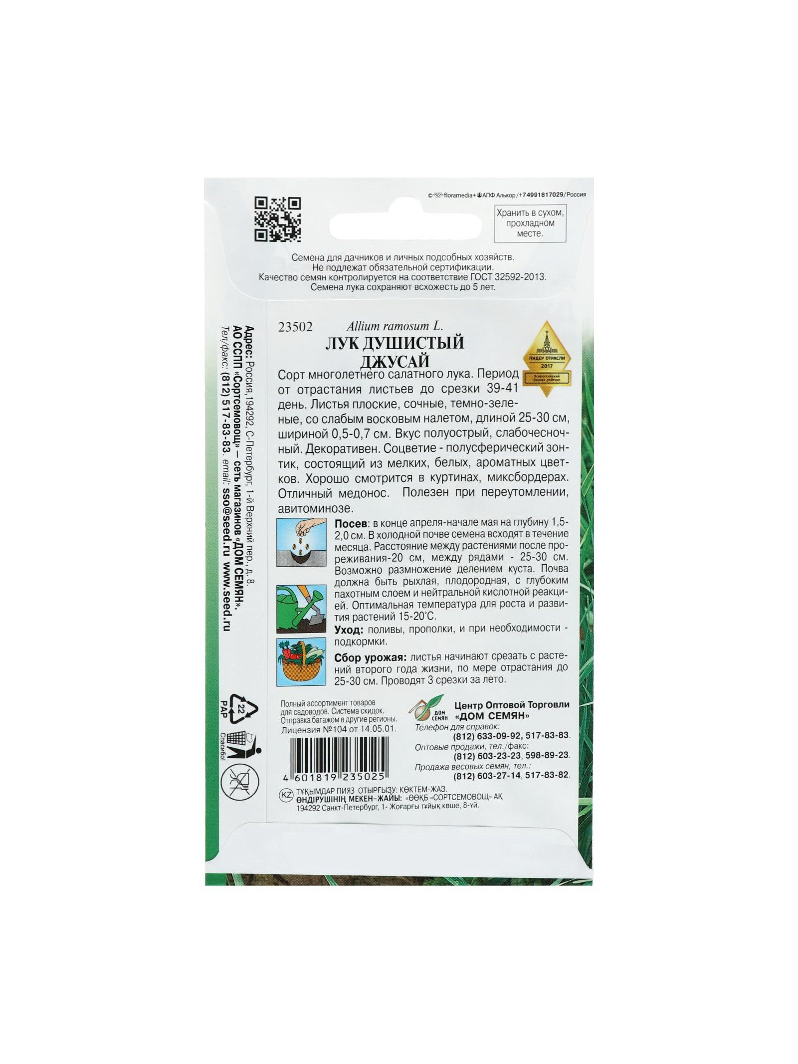 Набор семян Лук душистый "Джусай", 5 шт., 9x17x1 см., Мой выбор, Россия