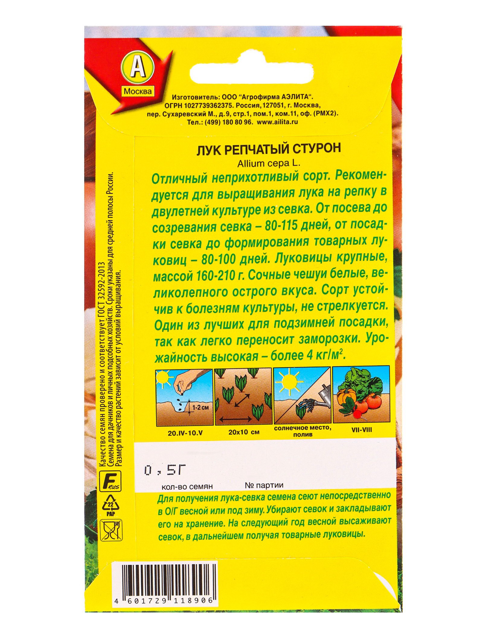 Семена Лук репчатый Стурон, Ц/П,0.5 г, Агрофирма АЭЛИТА, Италия