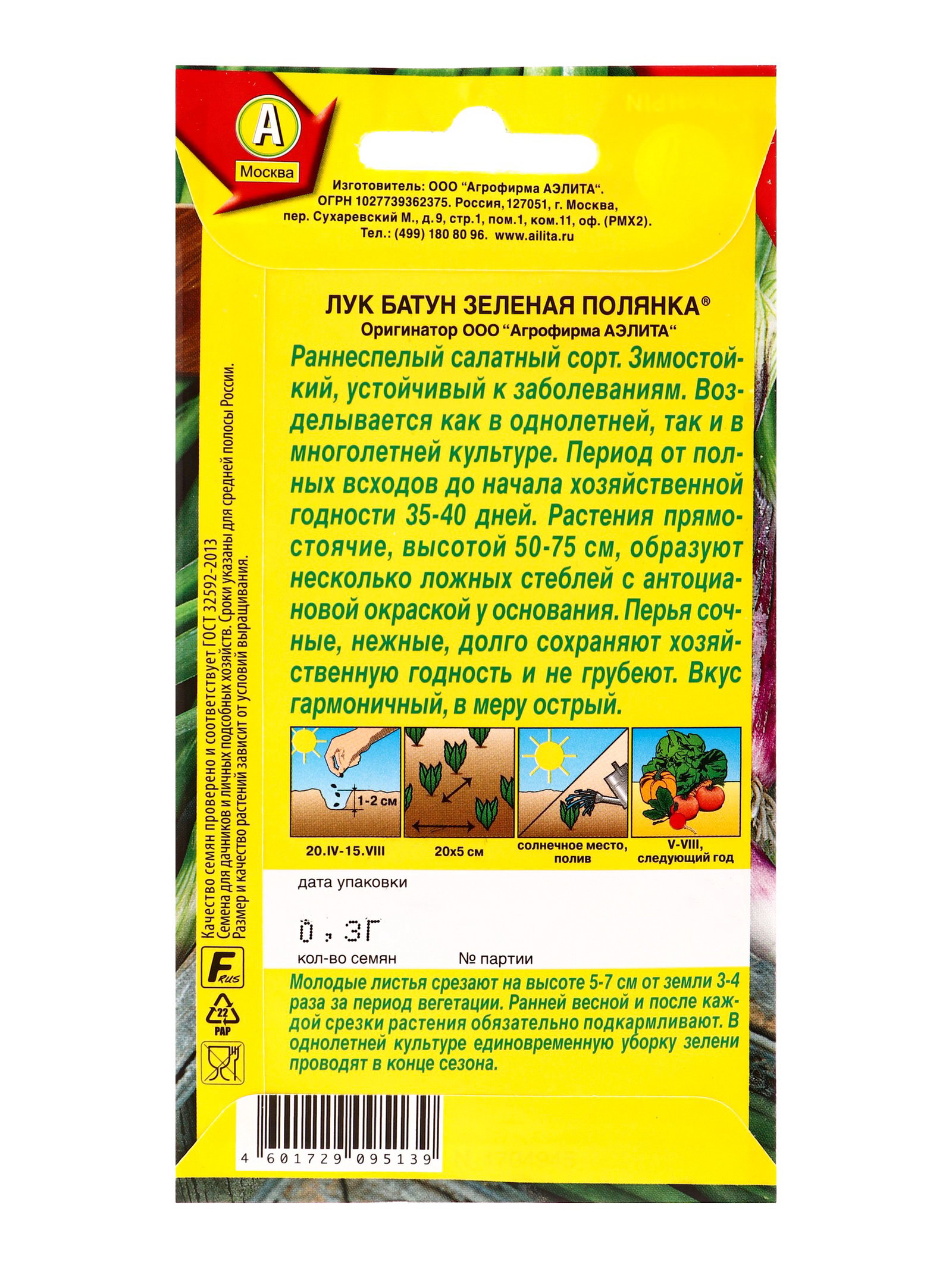 Семена Лук батун Зеленая полянка Мн, Ц/П,0.3 г, Агрофирма АЭЛИТА, Италия