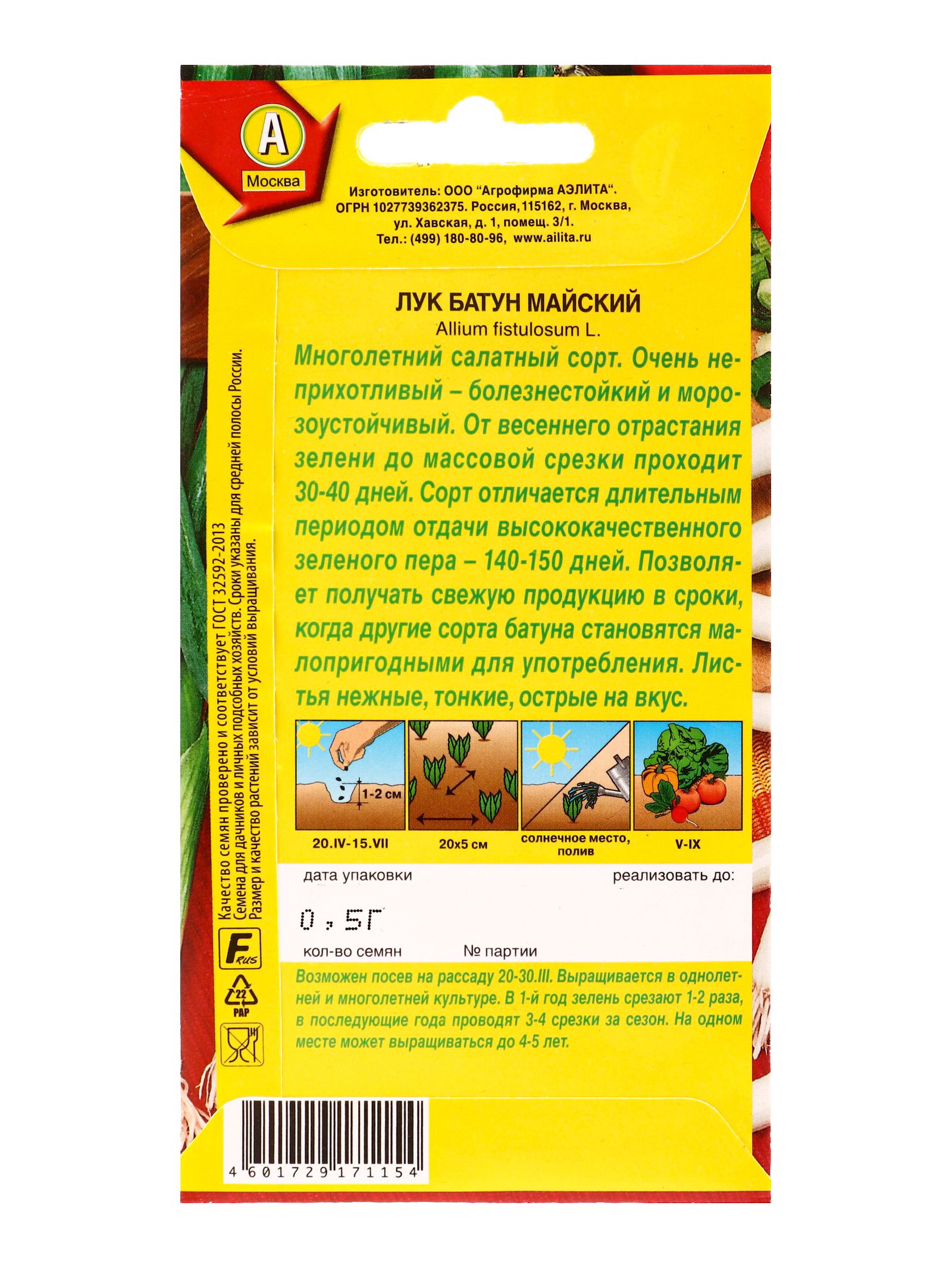 Семена Лук батун Майский Мн, Ц/П,0.5 г, Агрофирма АЭЛИТА, Италия
