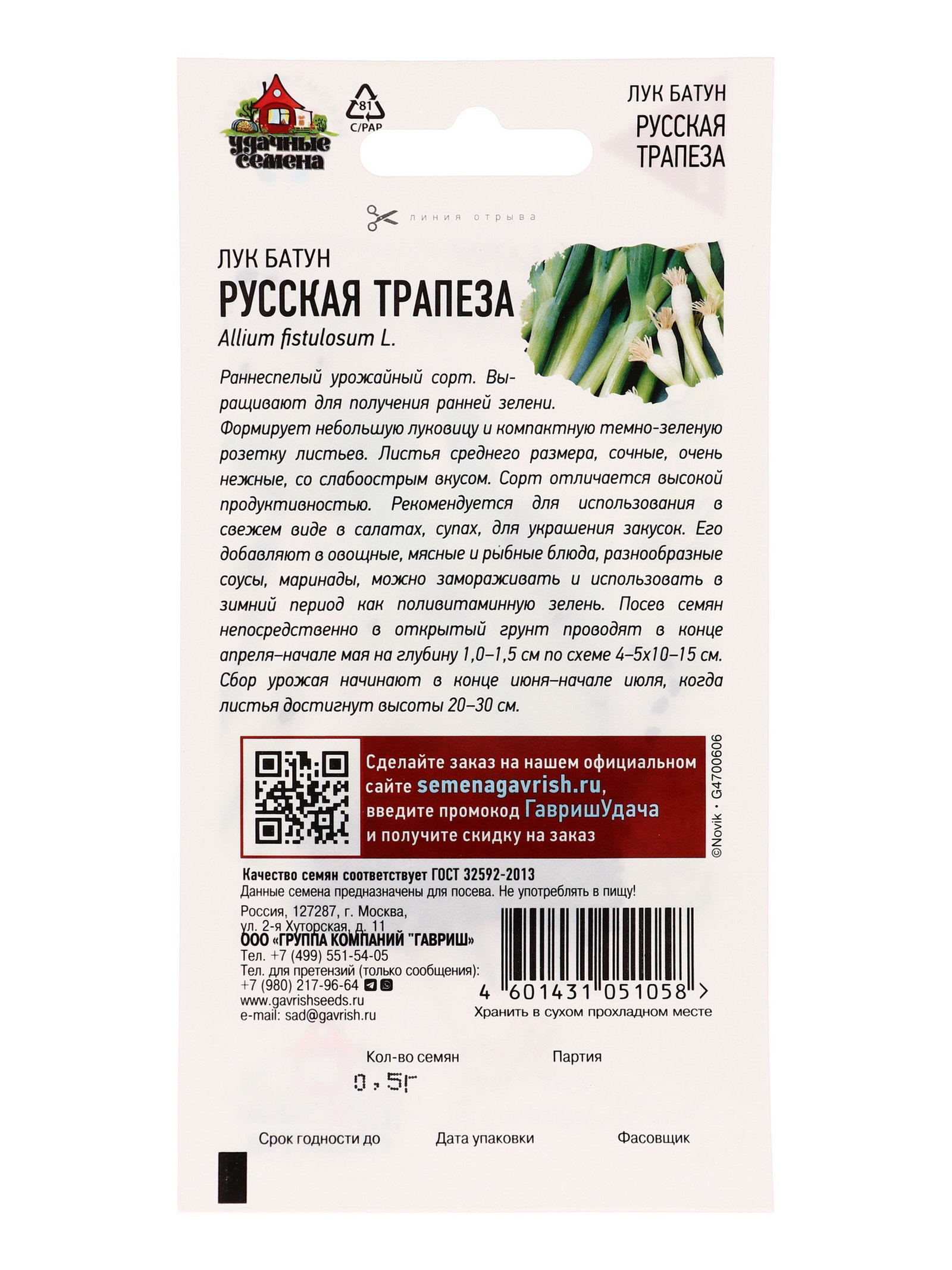 Семена Лук батун Русская трапеза, на зелень 0.5 г Уд. с., Гавриш, Россия