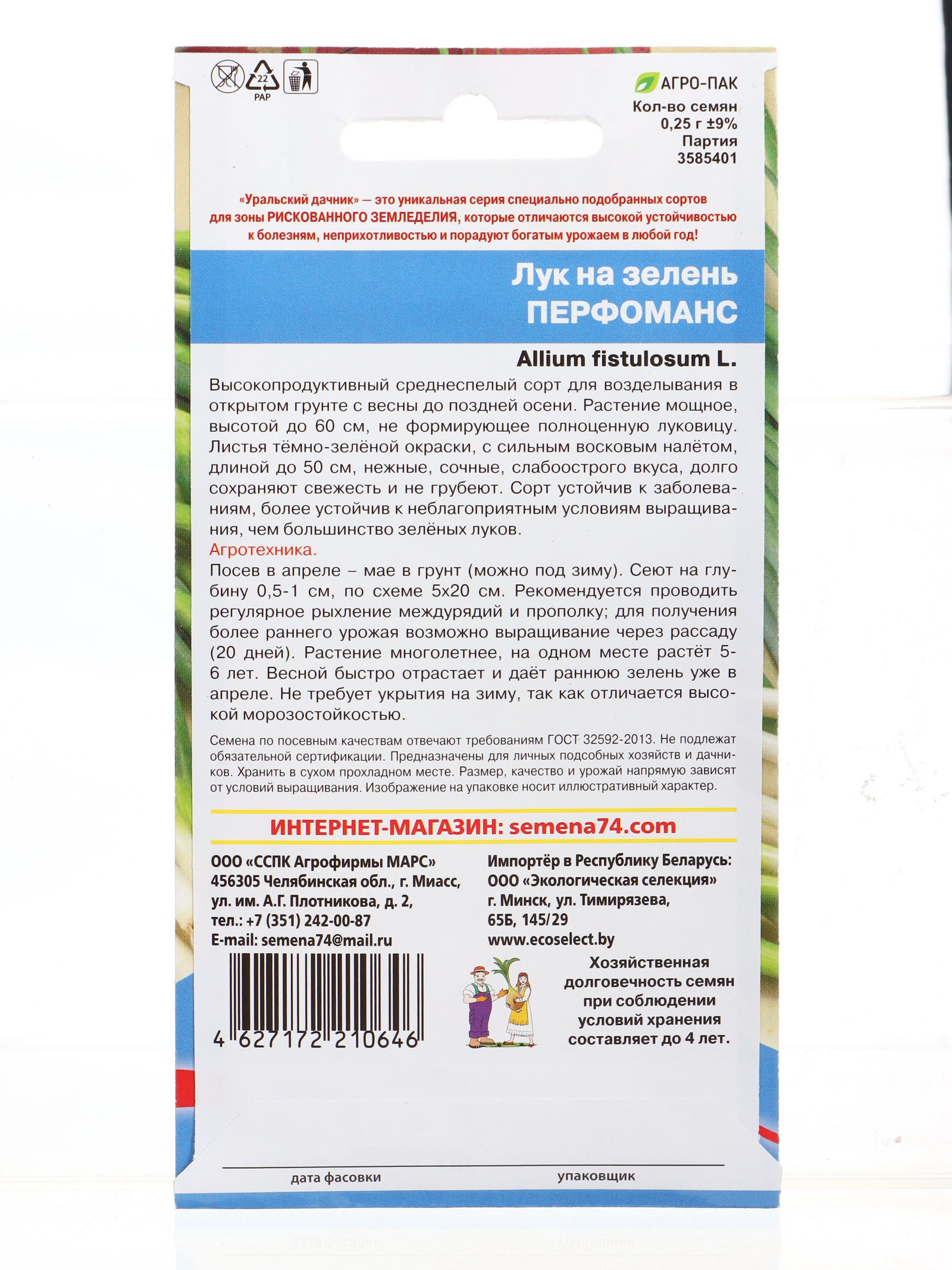 Семена Лук на зелень Перфоманс, Уральский Дачник, Россия