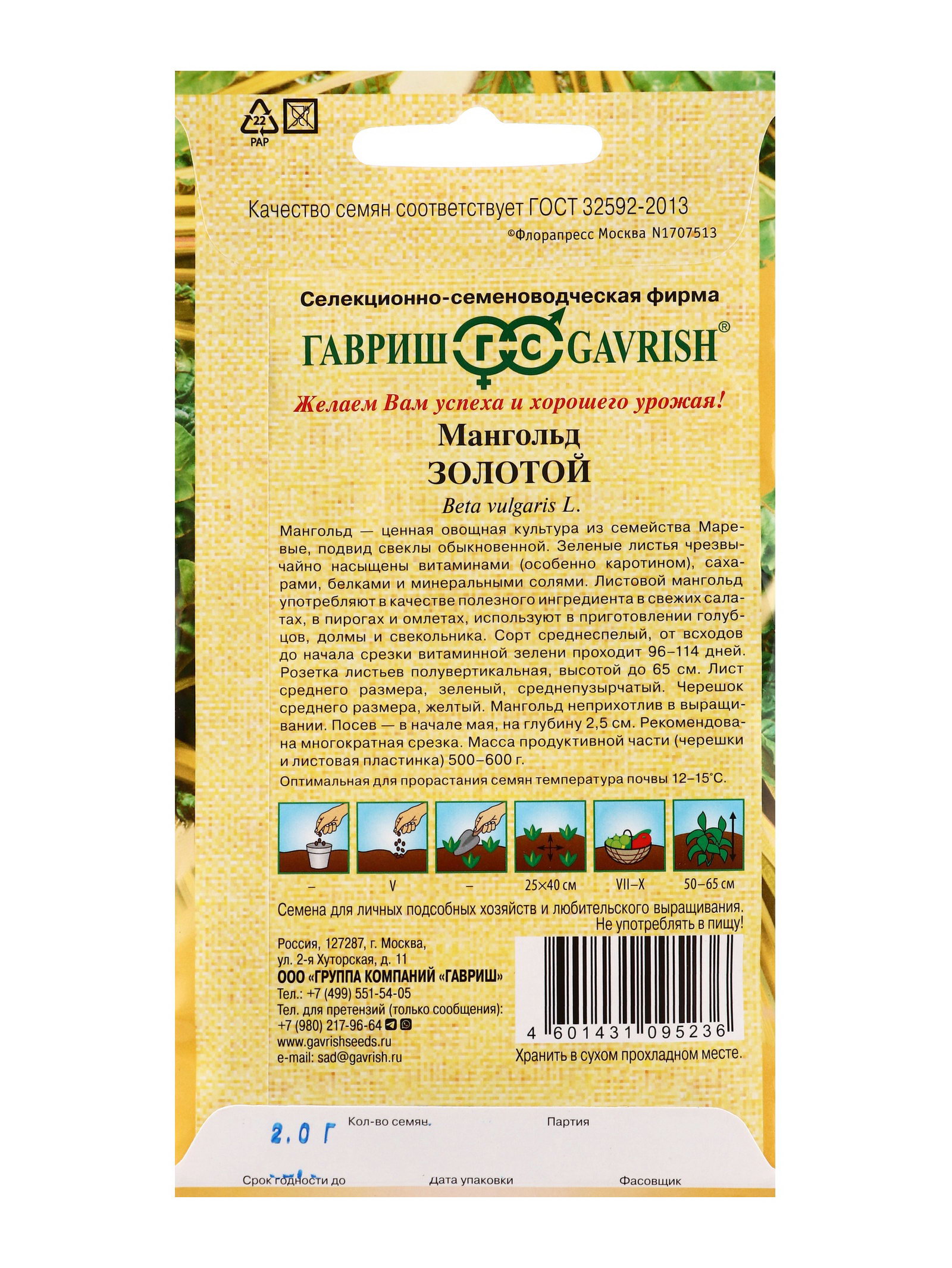 Семена Мангольд Золотой 2.0 г автор., Гавриш, Россия