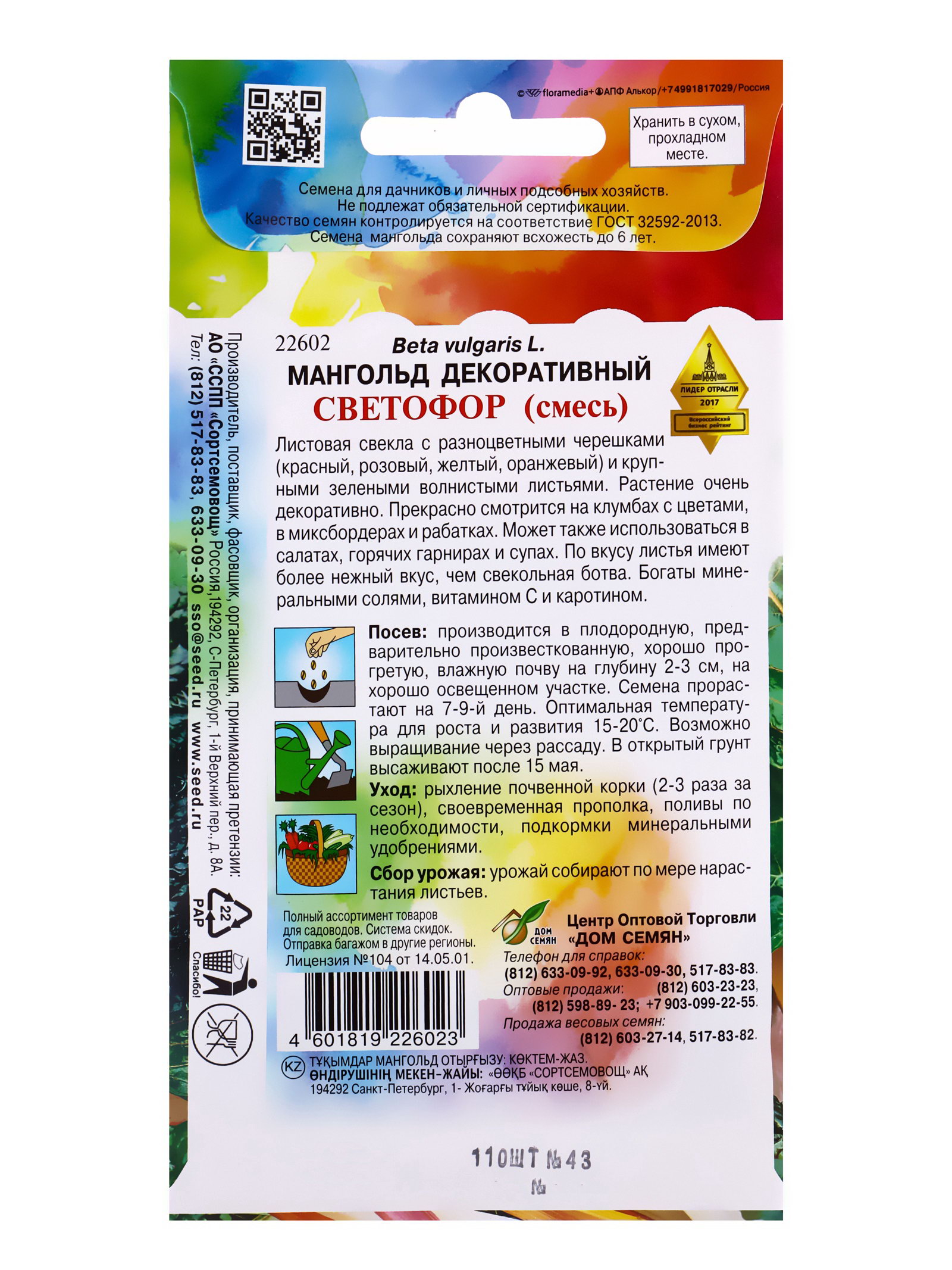 Семена Мангольд Светофор 110 шт, Дом семян, Россия