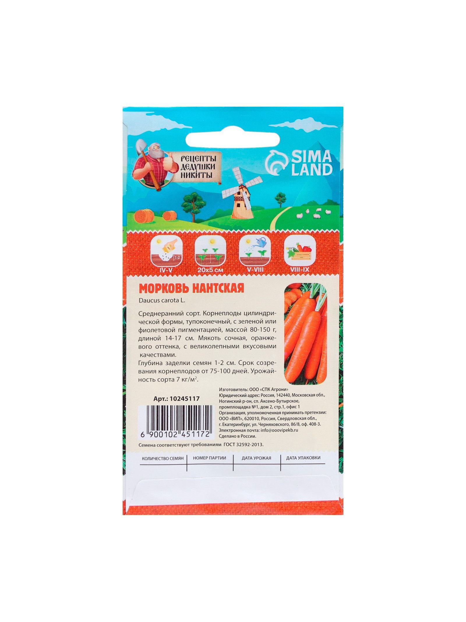 Семена Морковь "Нантская 4", 2 г, Рецепты дедушки Никиты, Россия