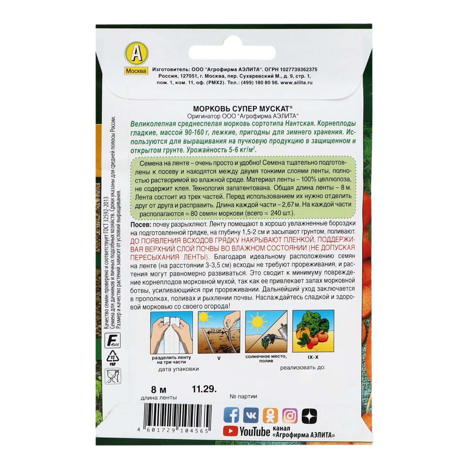 Семена Морковь "Супер Мускат", лента, 8 м, Агрофирма АЭЛИТА, Россия