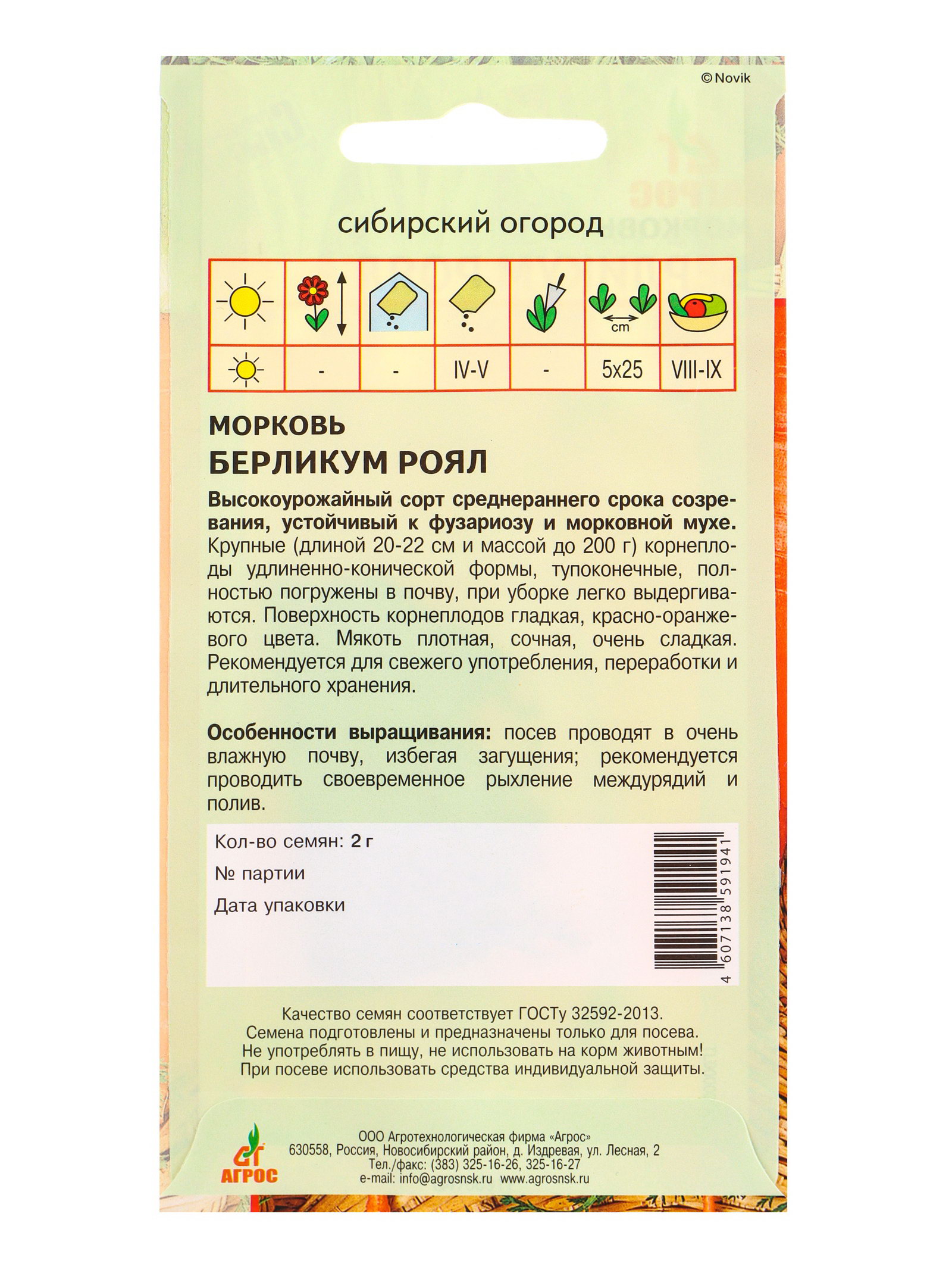 Семена Морковь"Берликум Роял" 2 г, Агросс, Россия