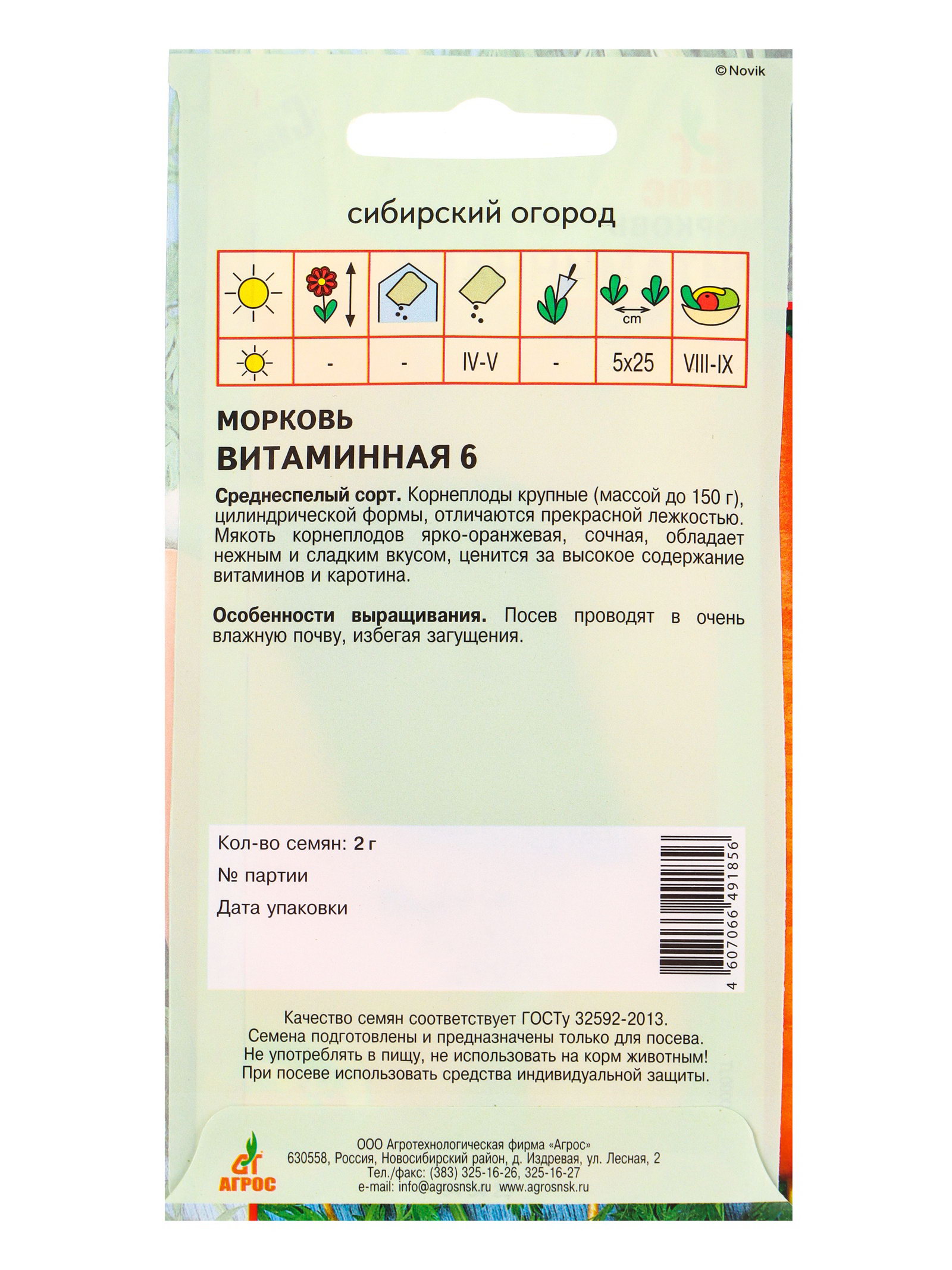 Семена Морковь "Витаминная 6" 2 г, Агросс, Россия