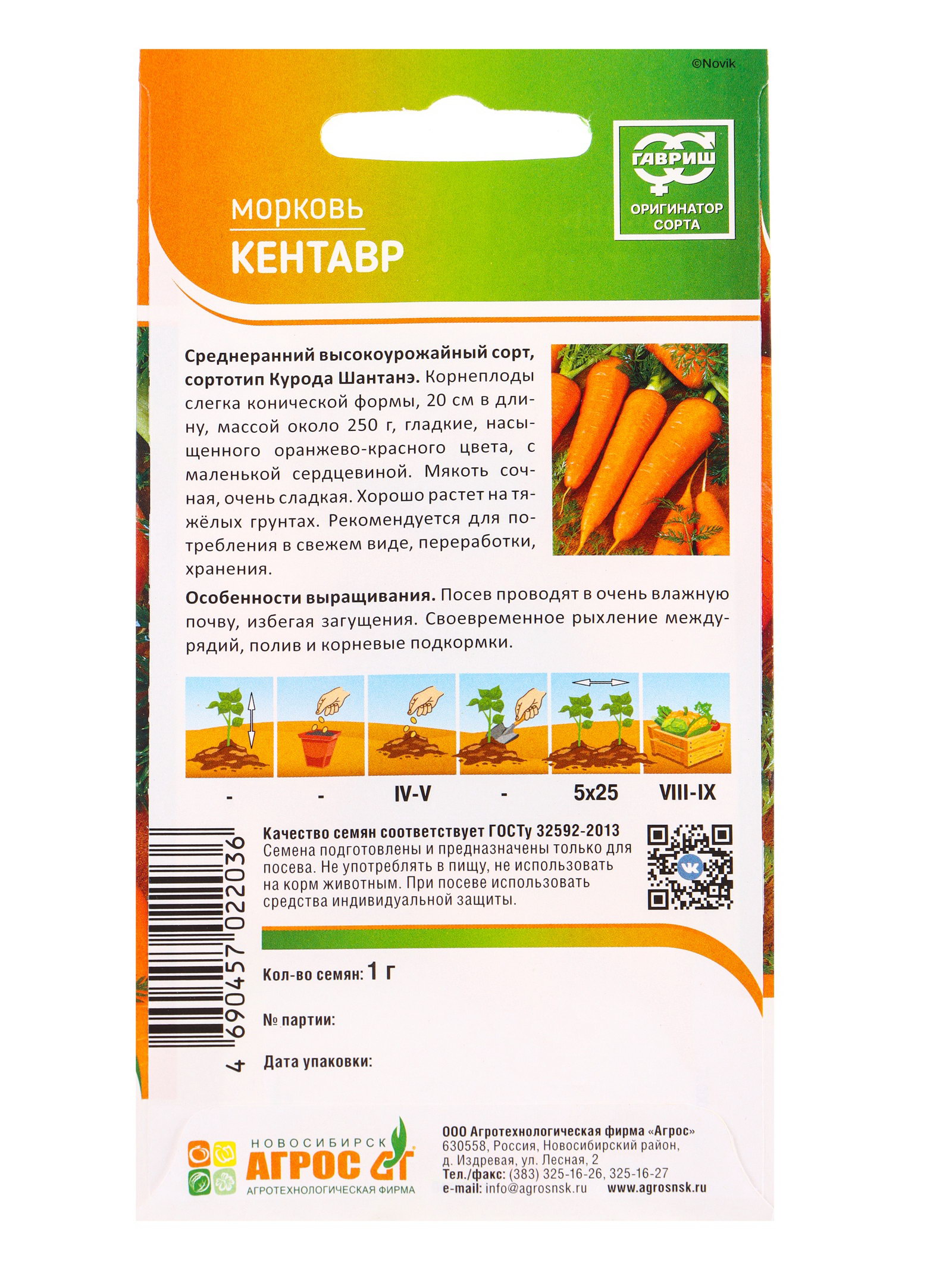 Семена Морковь "Кентавр" 1 г, Агросс, Россия