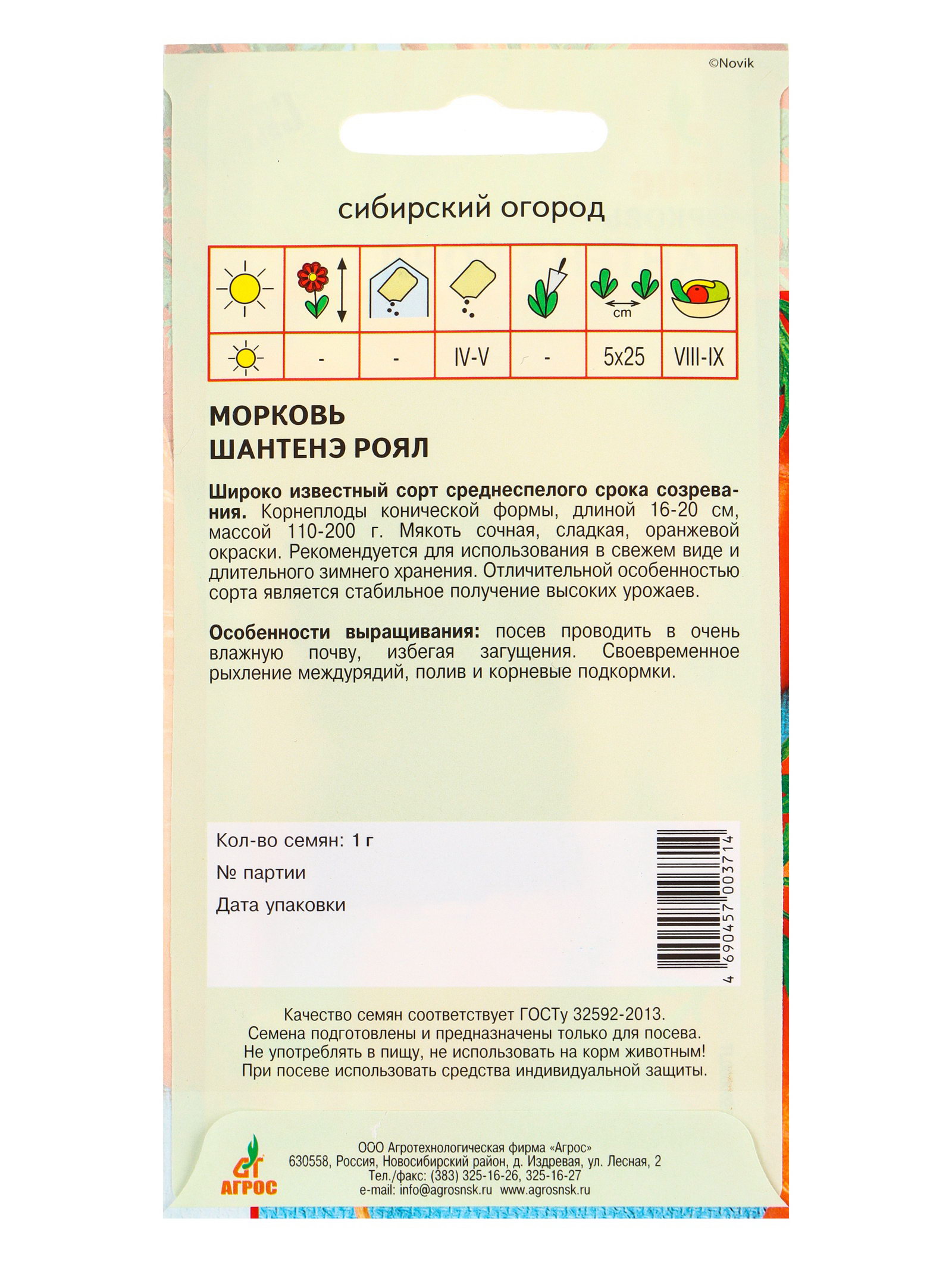 Семена Морковь "Шантенэ Роял" 1 г, Агросс, Россия
