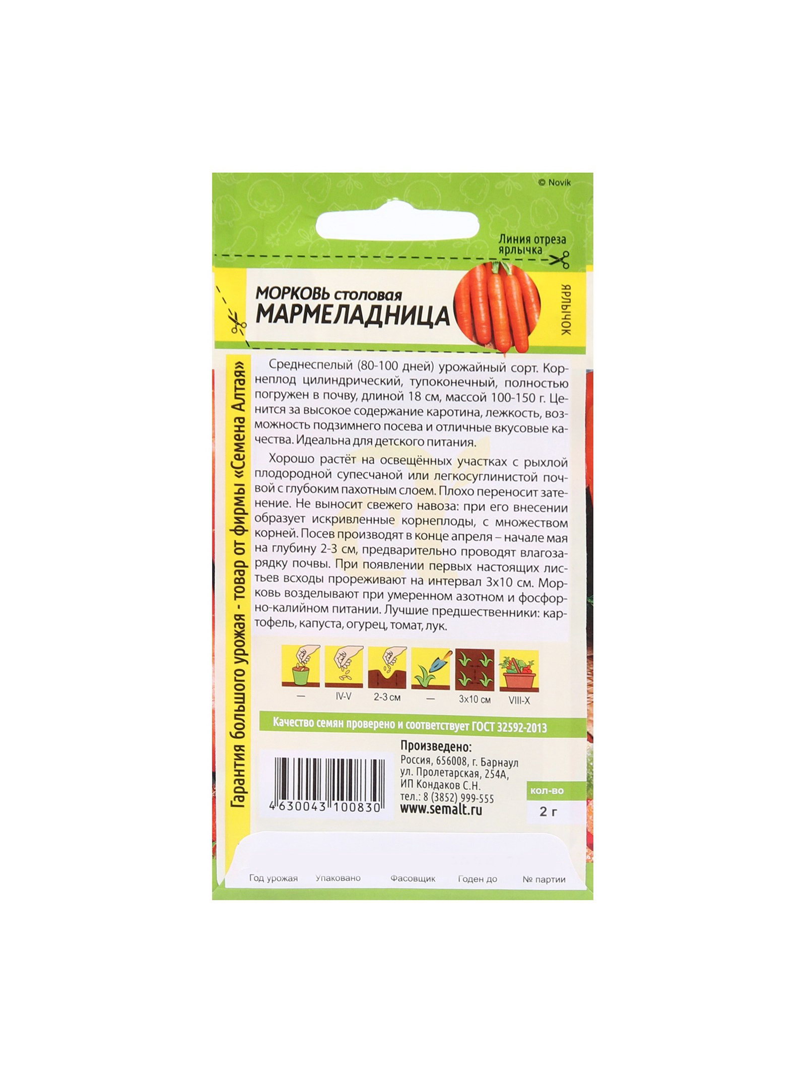 Набор семян Морковь "Мармеладница", цп, 5 шт., 9x17x1 см., Мой выбор, Россия