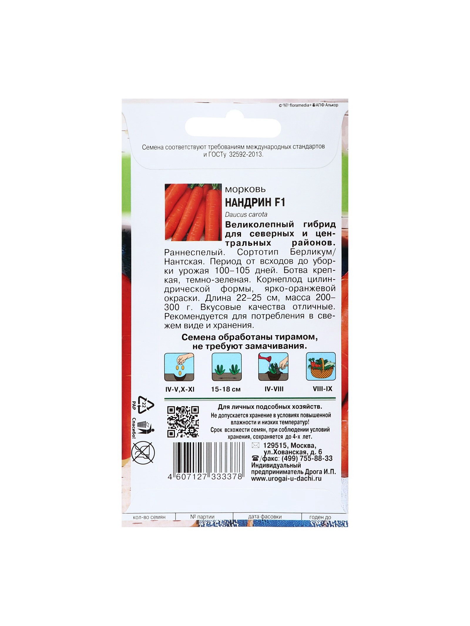 Набор семян Морковь "Нандрин", 5 шт., 9x17x1 см., Мой выбор, Россия