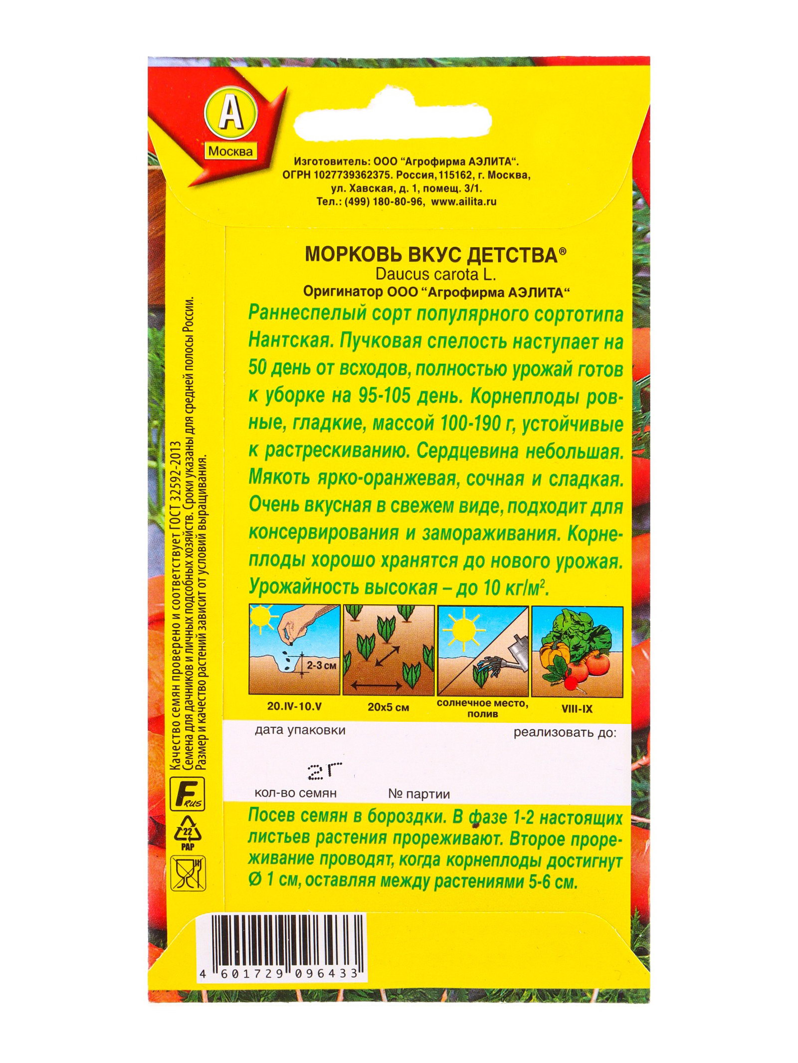 Семена Морковь Вкус детства, Ц/П,2 г, Агрофирма АЭЛИТА, Россия