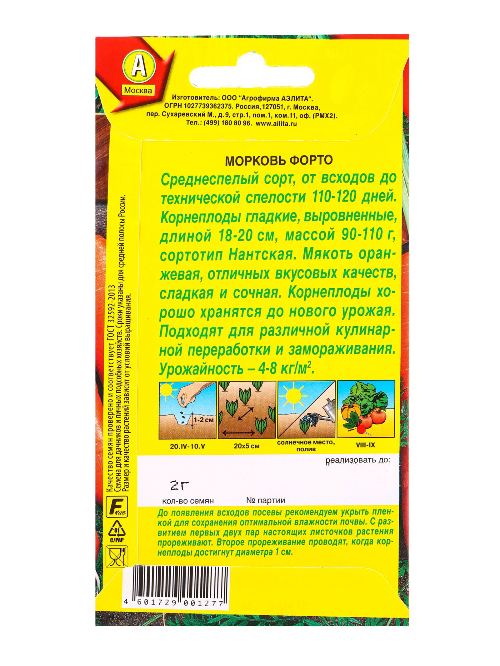 Семена Морковь Форто, Ц/П,2 г, Агрофирма АЭЛИТА, Россия