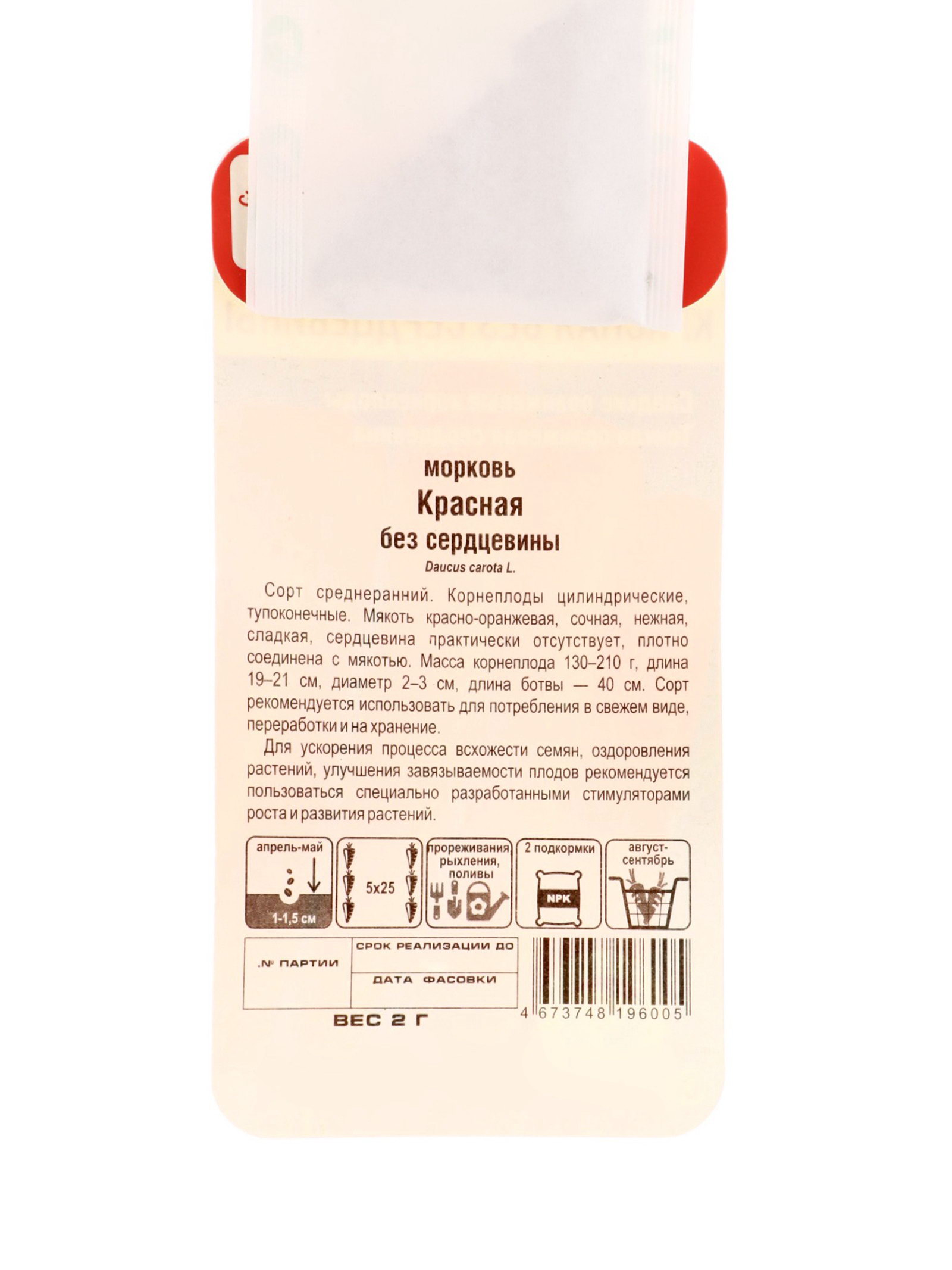 Посев (посадка) в грунт: Апрель, Май Цвет плода: Красный, Оранжевый Размер упаковки: 8 x 0.2 x 15 см. tnved: 1209918000 Температурное ограничение: Нет Сорт или гибрид: Сорт Место выращивания: Открытый грунт Сроки созревания: Среднеранний Вид: Простые семена | ||