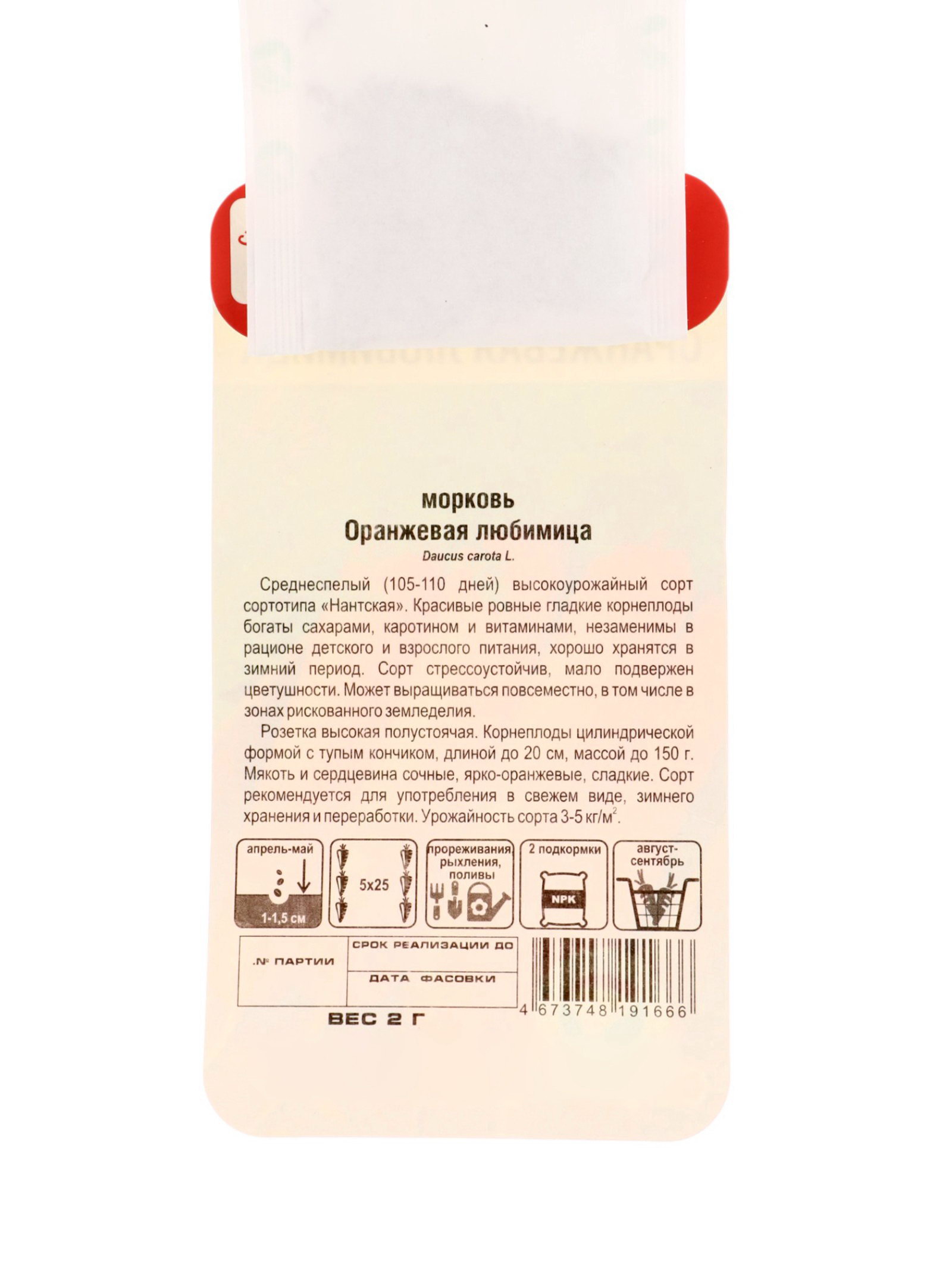 Семена Морковь Оранжевая любимица 2г, Сибирский сад, Россия