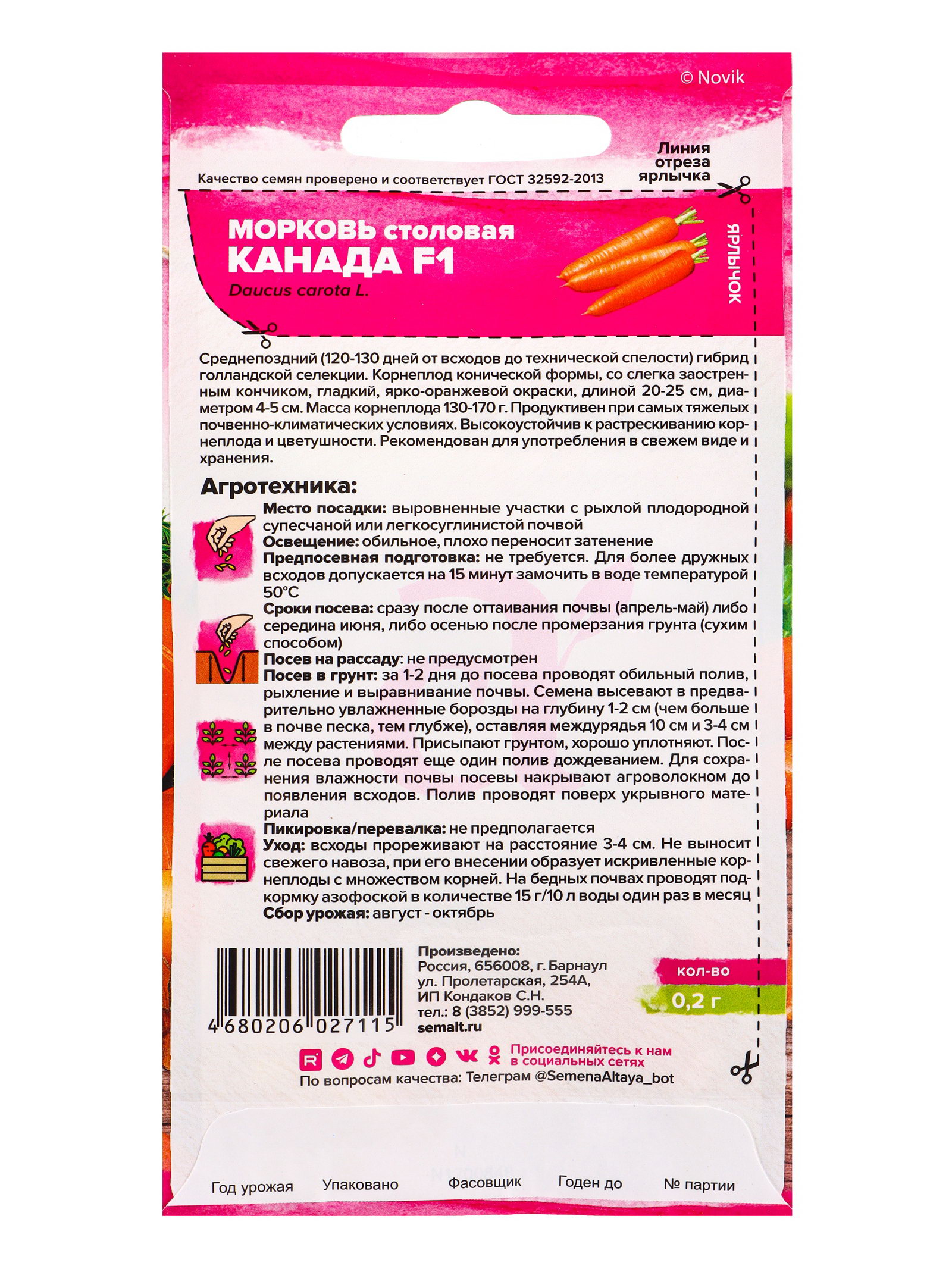 Семена Морковь "Канада F1", 0.2 г, Bejo, Семена Алтая, Россия