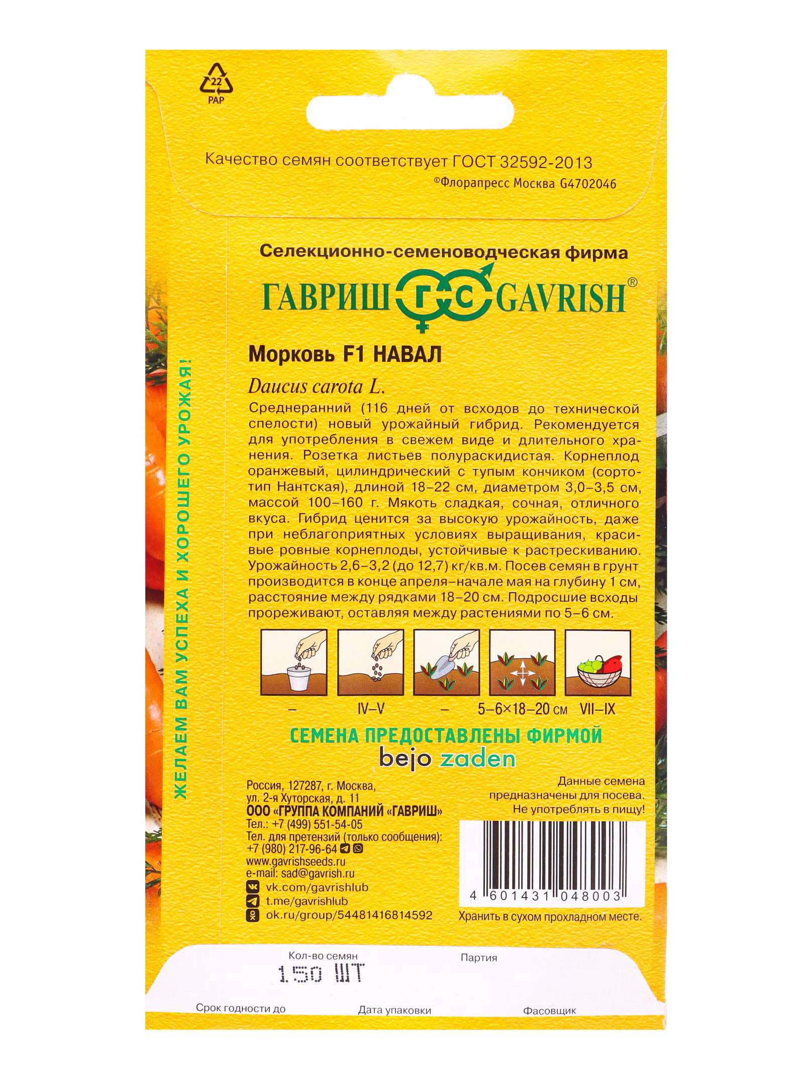 Семена Морковь Навал F1 150 шт., Гавриш, Россия