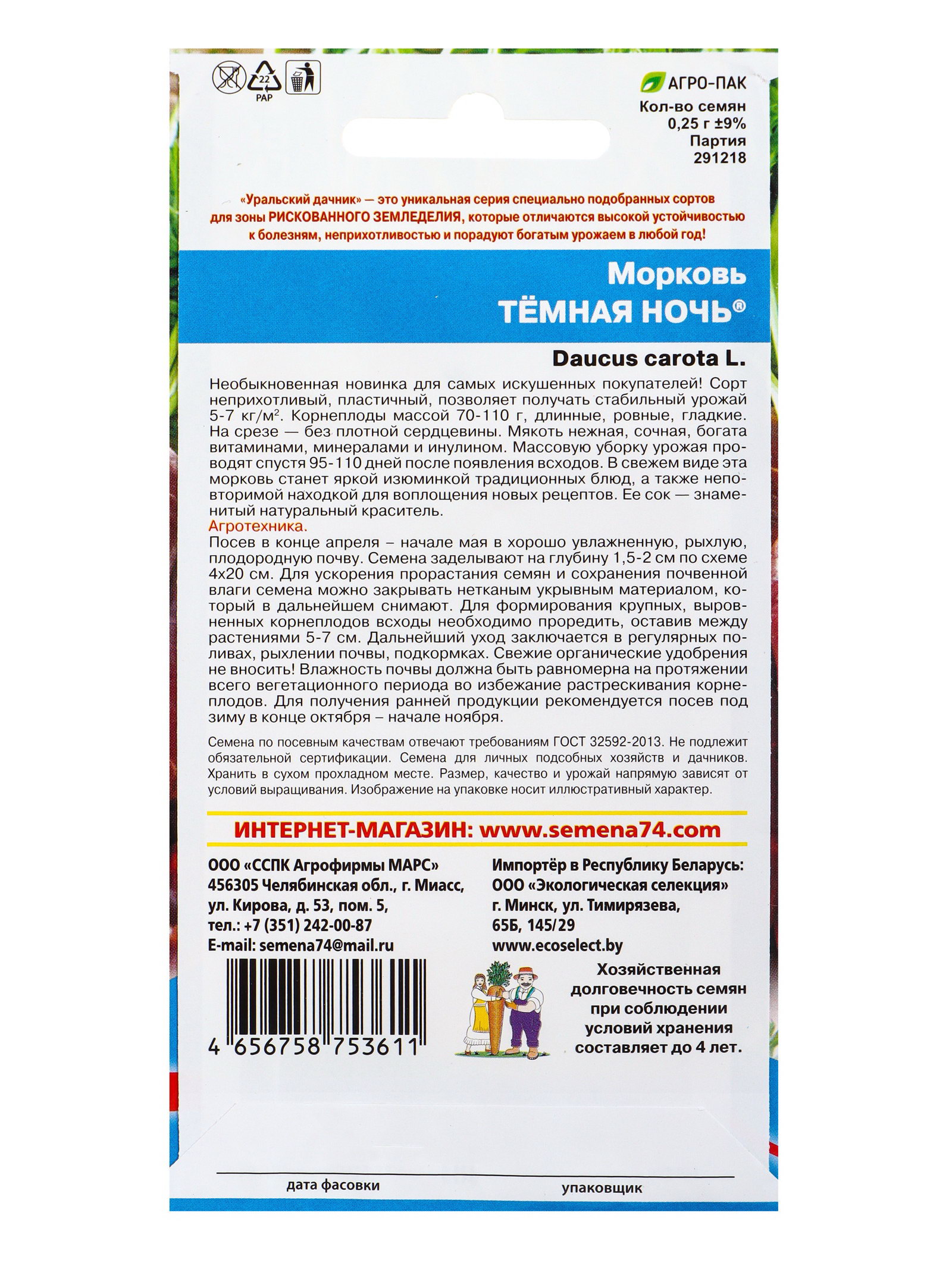 Семена Морковь Тёмная ночь, Уральский Дачник, Россия