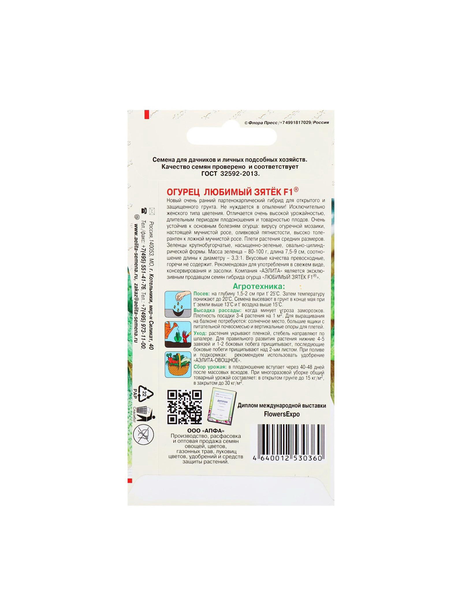 Семена Огурец "Любимый зятек" F1, раннеспелый, партенокарпический, 10 шт, Агрофирма АЭЛИТА, Германия
