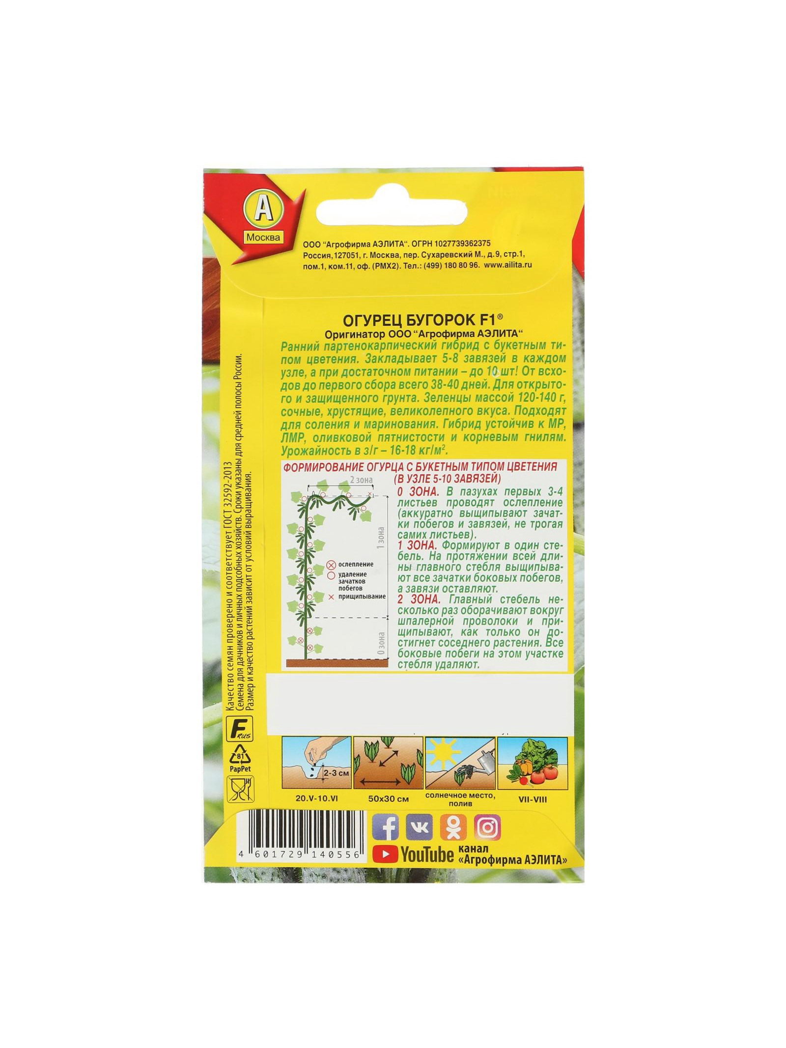 Сроки созревания: Ранний ( до 48 дней), Сверхранний (скороспелый) Размер упаковки: 8 x 15 x 0.1 см. Вьющиеся (лианы): Да Ампельные: Да Размер: Корнишоны (до 12 см) см tnved: 1209918000 Упаковка: Цветная Сорт или гибрид: Гибрид F1 Вегетационный период, дни: [38,40] Место выращивания: Универсальный Тип: Партенокарпические Сорт: F1 "Бугорок" это ультраранний и высокоурожайный партенокарпический сорт для плёночных укрытий. Плодоношение начинается на 38–40 день от всходов. Растение отличается высокой устойчивостью к настоящей и ложной мучнистой росе, оливковой пятнистости и корневой гнили. "Бугорок" короткий цилиндрический бугорчатый гибрид массой 75–80 гр Благодаря отсутствию горчинки и бесподобному вкусу корнишоны используются в свежем, солёном и в консервированном виде. Урожайность 16–18 кг/?2. Посев Семена высаживают в открытый грунт. Всходы появляются через 20–30 дней. Глубина заделки 1,5–2 см Огурцы предпочитают высокоплодородные, дренированные, хорошо заправленные органическими удобрениями почвы. Уход Для продолжительного и обильного плодоношения растениям необходим своевременный полив, регулярная прополка, рыхление и подкормка минеральными удобрениями. | ||