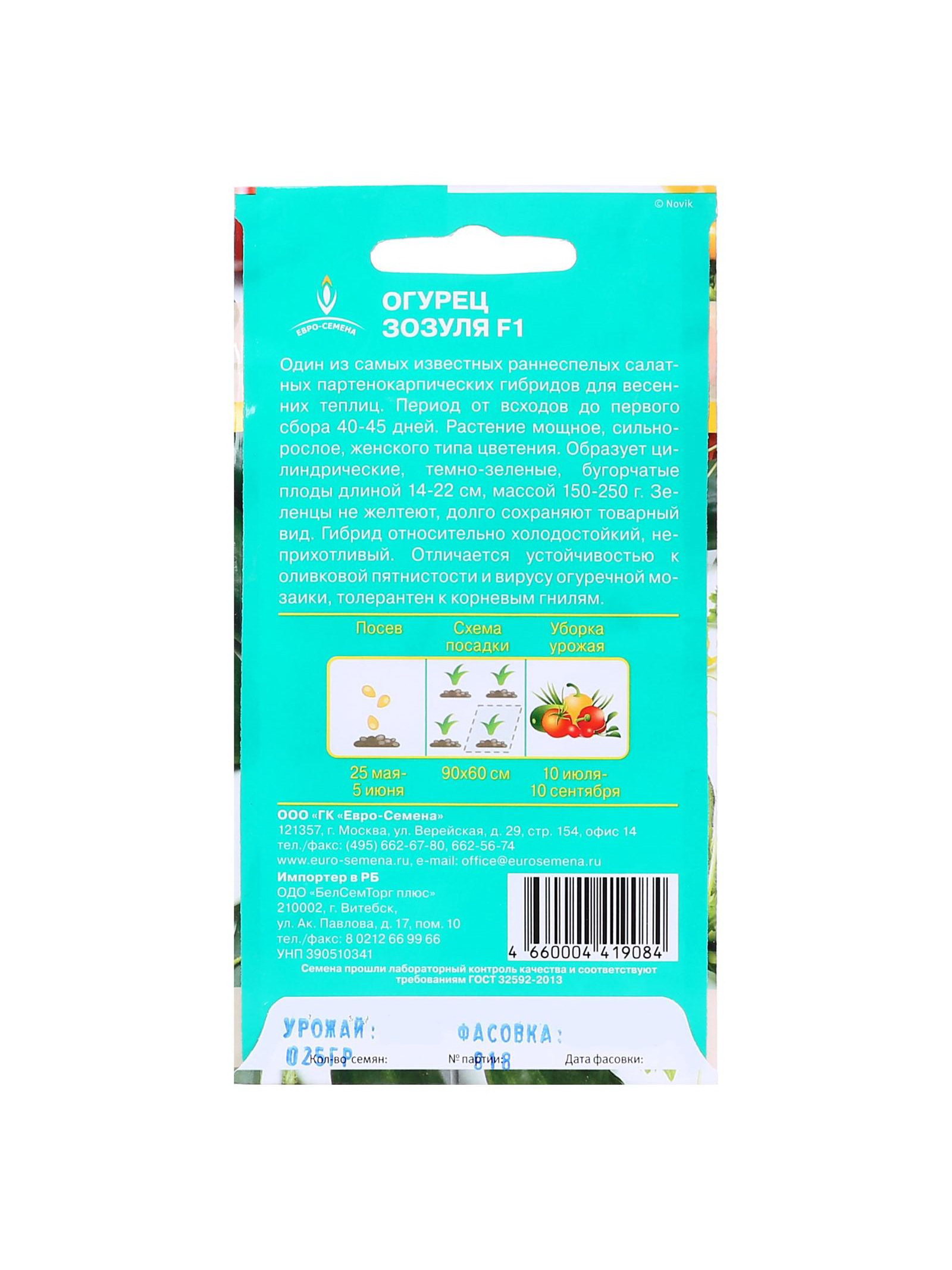 Семена Огурец "Зозуля" F1, партенокарпический, 0.25 г, Евро-семена, Россия